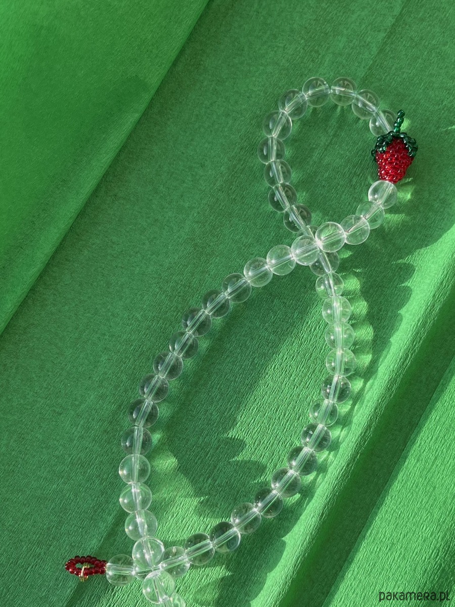 Owoce są ręcznie szyte z najwyższej jakości japońskich, szklanych koralików.