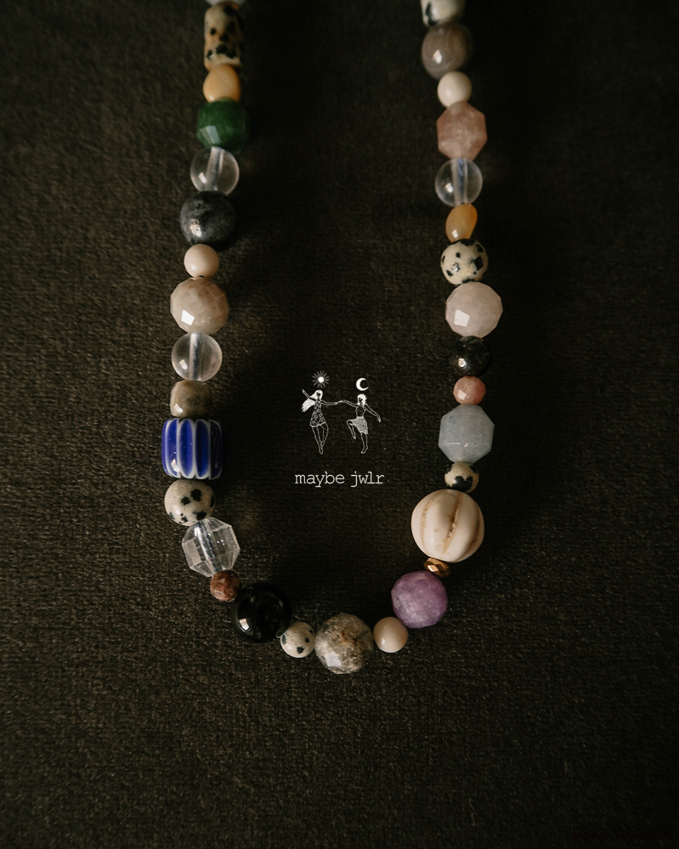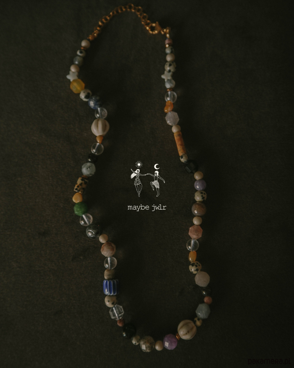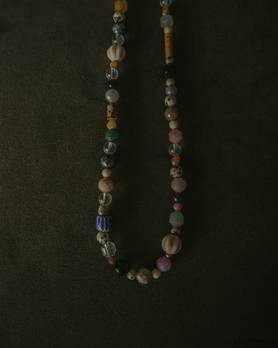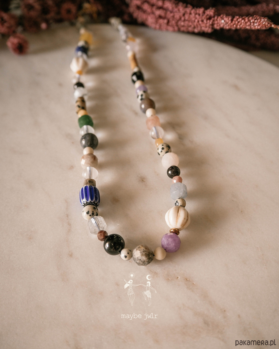 Poznaj naszyjnik stworzony z myślą o osobach, które lubią łączyć luz z elegancją. To mieszanka naturalnych kamieni i ręcznie robionych, szklanych koralików lampwork – każdy element ma tu swój charakter, kolor, fakturę i energię. Dzięki temu za każdym razem nosisz na szyi coś niepowtarzalnego.