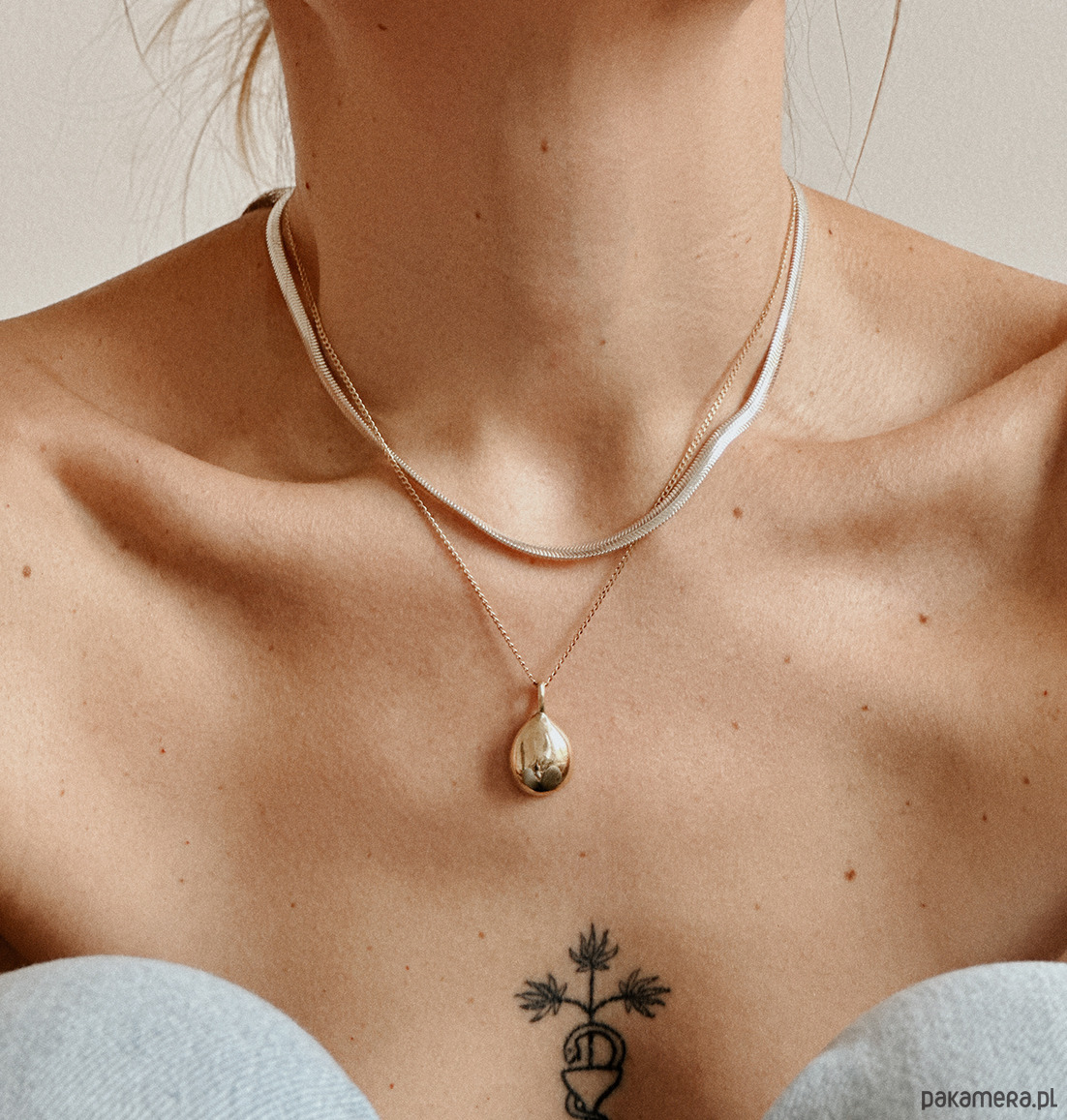Naszyjnik Funno z łańcyszkiem o długości 50 cm wykonany jest ręcznie, przez co zachowuje swój rzeźbiarski charakter, a co za tym idzie niepowtarzalne detale. Idealnie komponuje się w zestawie z małym naszyjnikiem Funni. Naszyjnik jest dostępny w dwóch wariantach: srebro złocone i srebro. Na specjalne zamówienie może zostać wykonany z dowolnie wybranego koloru złota (żółte, białe lub różowe). Wielkość i kształt zamawianego produktu może nieznacznie różnić się od modelu zaprezentowanego na zdjęciach. Zdjęcia służą jako przykłady wykonanych realizacji. Wysokość zawieszki (z ogniwem): 27 mm, szerokość łańcuszka 1,33 mm.