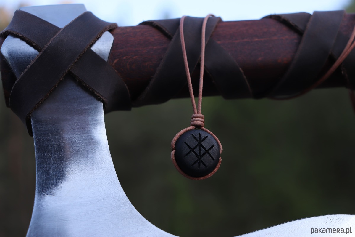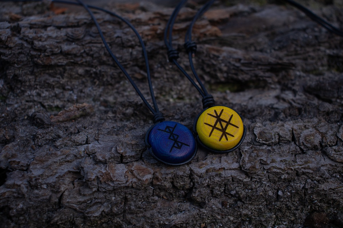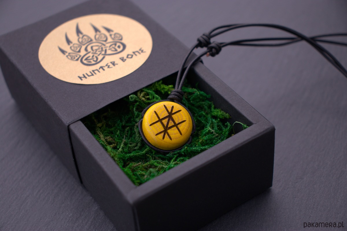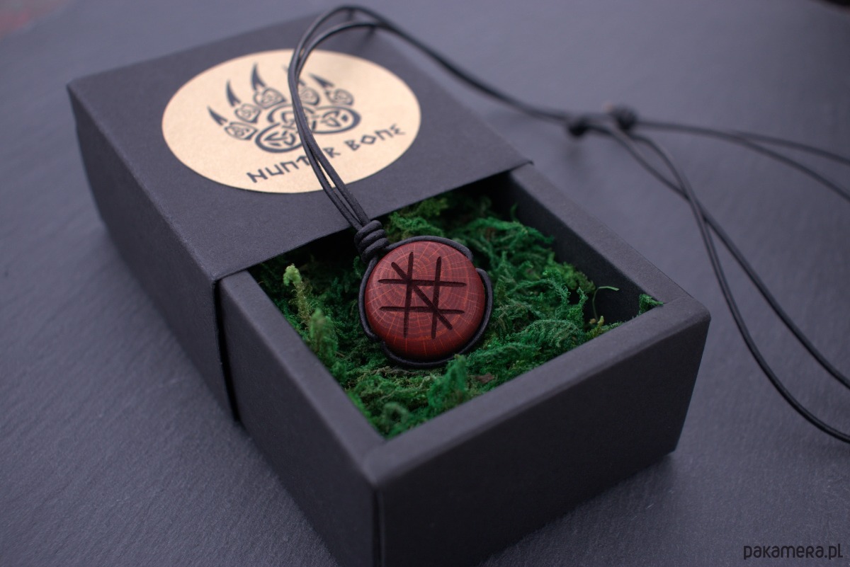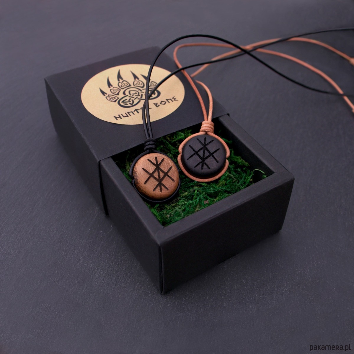 Ręcznie robiony naszyjnik z naturalnego drewna bukowego -unikalna runa symbolizującą miłość między mężczyznami 🌳