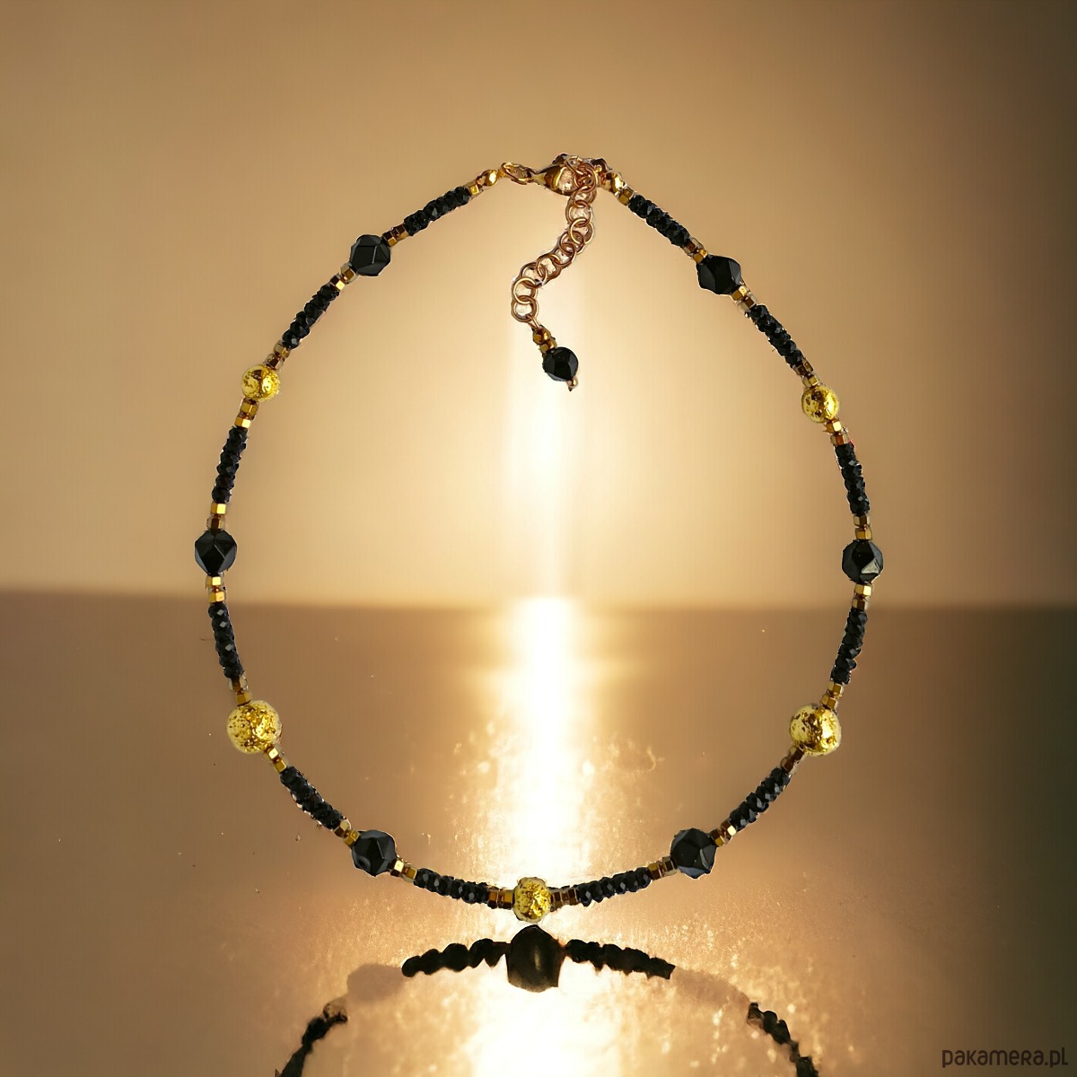 Naszyjnik GLAM : krótki naszyjnik choker : czarno - złoty :: onyks, lawa