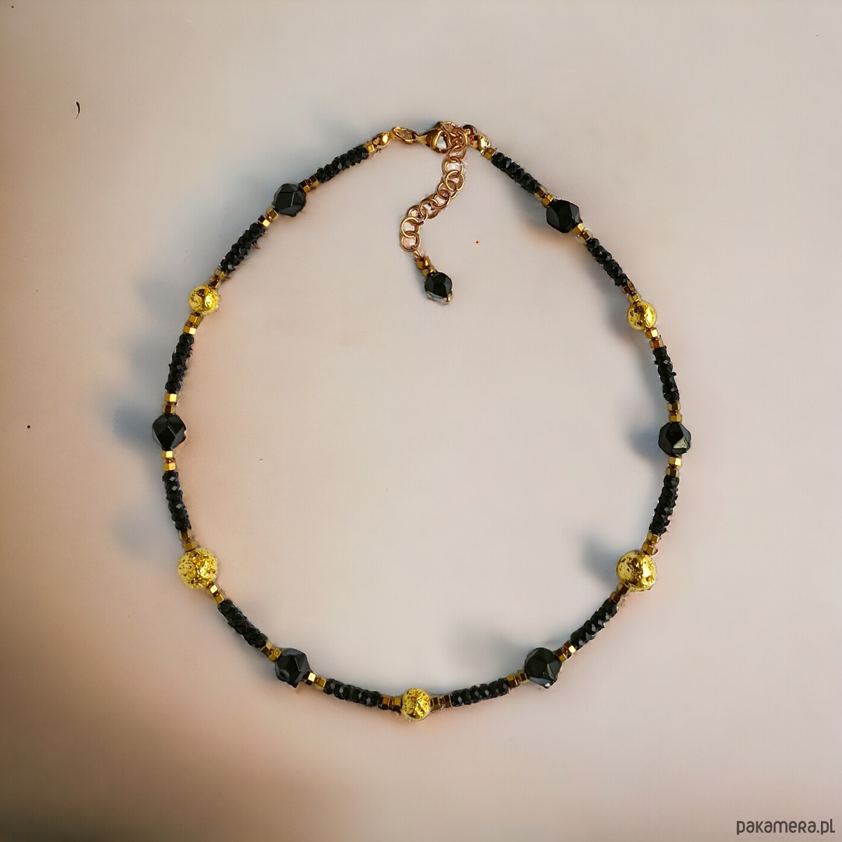 Naszyjnik GLAM : krótki naszyjnik choker : czarno - złoty : onyks, lawa