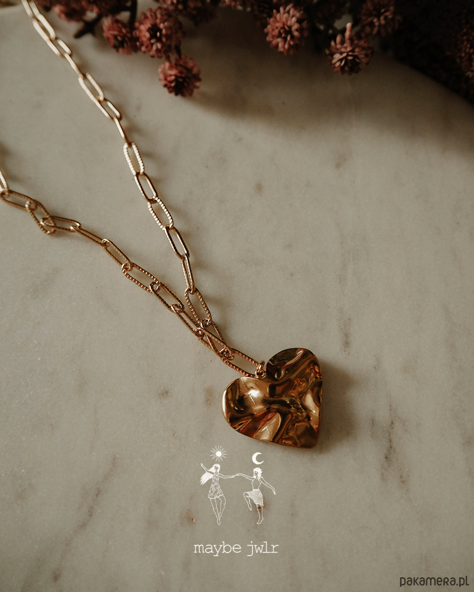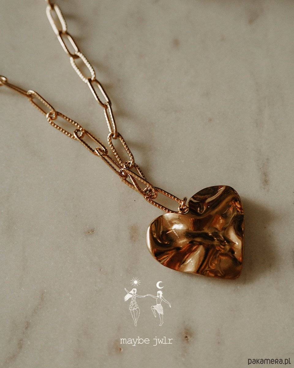 Jeśli lubisz biżuterię, która ma charakter, ale jednocześnie pasuje do wszystkiego – ten naszyjnik jest totalnym pewniakiem. Oryginalny, karbowany „spinacz” w złotym wydaniu to już ikona stylu, modny i bardzo charakterystyczny dodatek, a zawieszka w kształcie serca dodaje całości wyjątkowego, lekko romantycznego vibe’u.