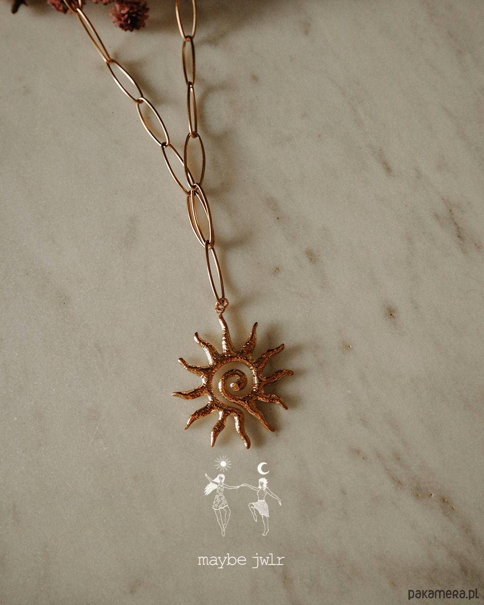 Jeśli lubisz biżuterię, która ma charakter, ale jednocześnie pasuje do wszystkiego – ten naszyjnik jest totalnym pewniakiem. Oryginalny „spinacz” w złotym wydaniu to już ikona stylu, modny i bardzo charakterystyczny dodatek, a zawieszka w kształcie słońca dodaje całości wyjątkowego, lekko magicznego vibe’u.