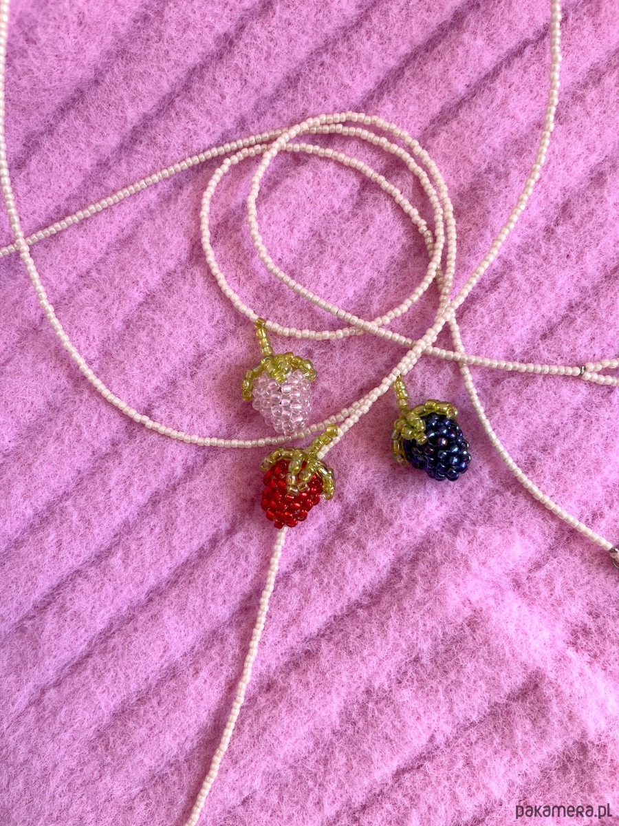 Owoce są ręcznie szyte z najwyższej jakości japońskich, szklanych koralików.