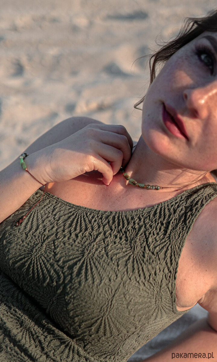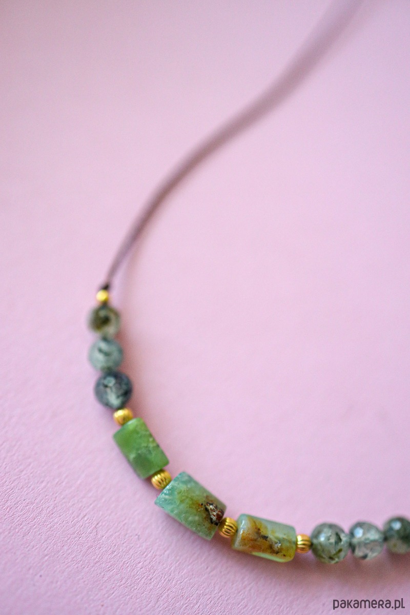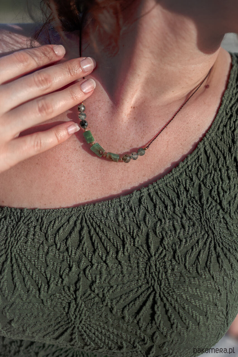 Naszyjnik regulowany na sznurku wykonany z kamieni naturalnych , oraz srebra p. 925
