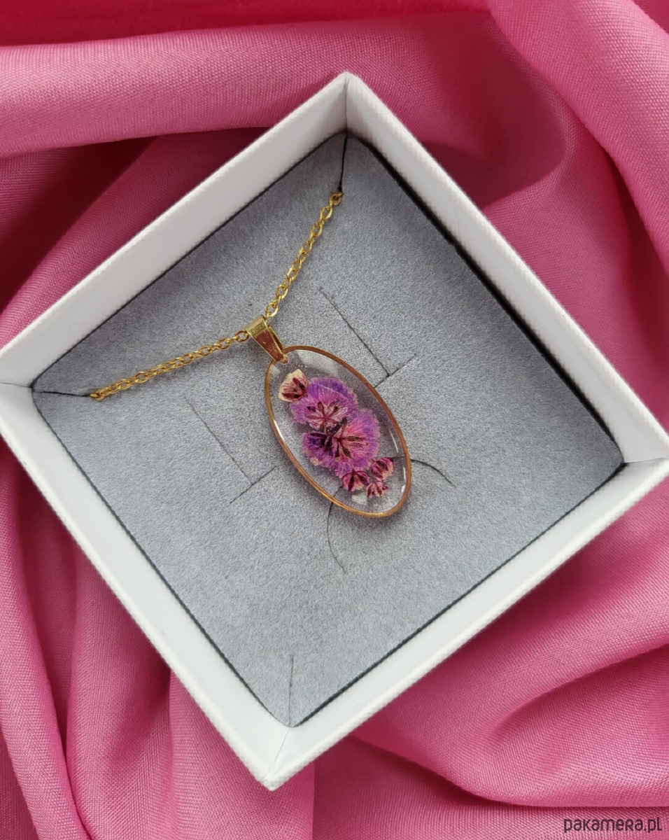 Naszyjnik z kwiatami suszonej gipsówki to unikatowa, ręcznie wykonana biżuteria z serii Harmonia.