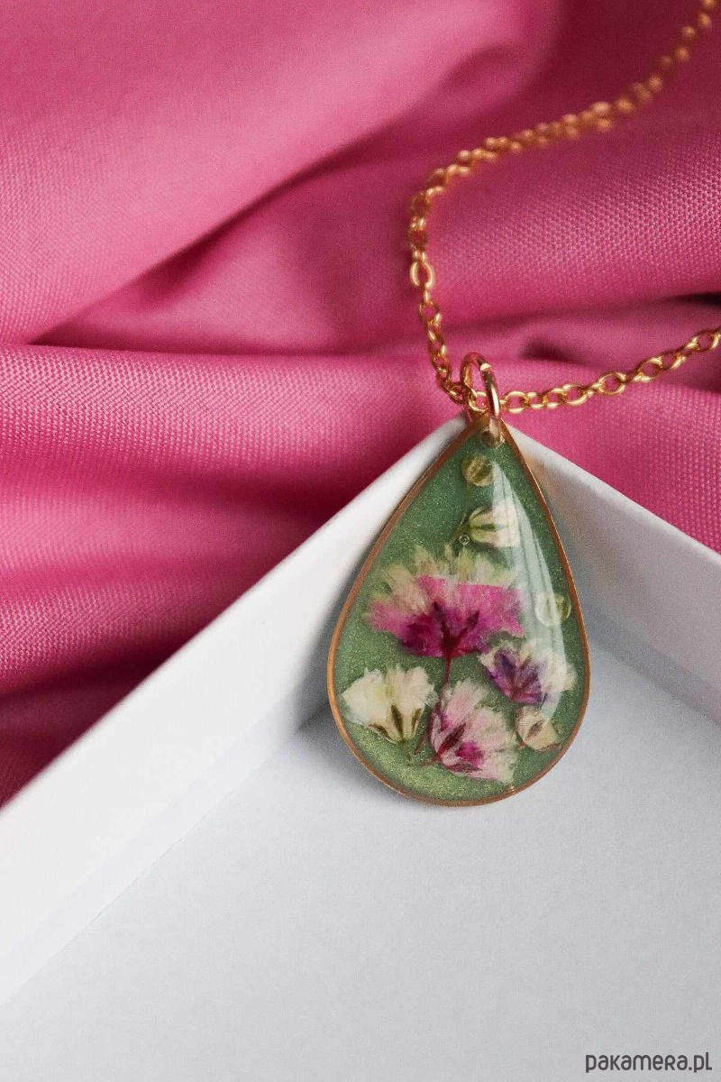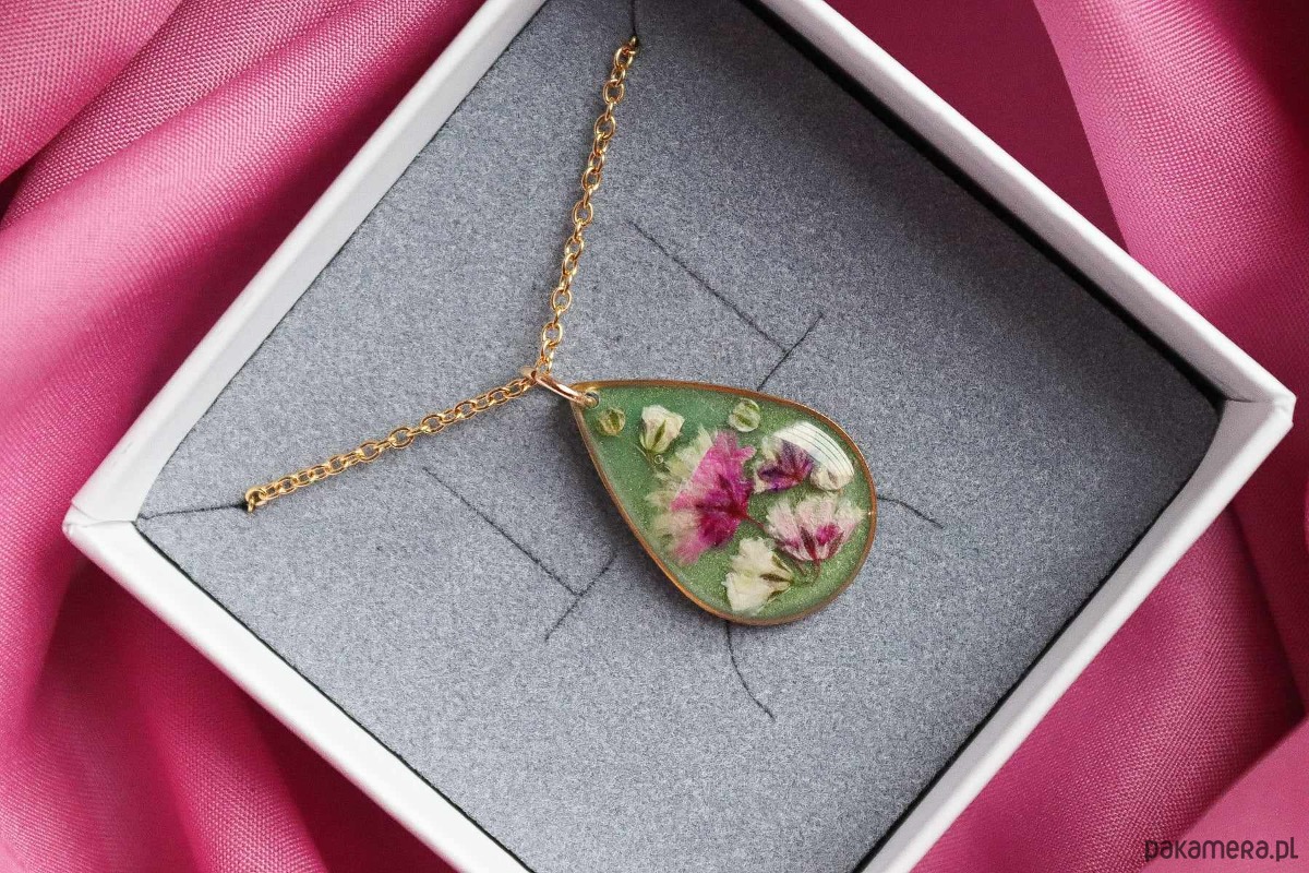 Naszyjnik z kwiatami suszonej gipsówki to unikatowa, ręcznie wykonana biżuteria z serii Harmonia.