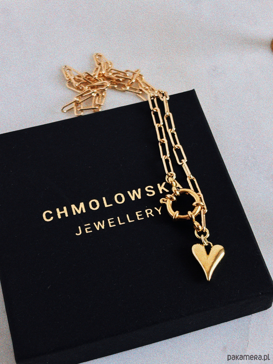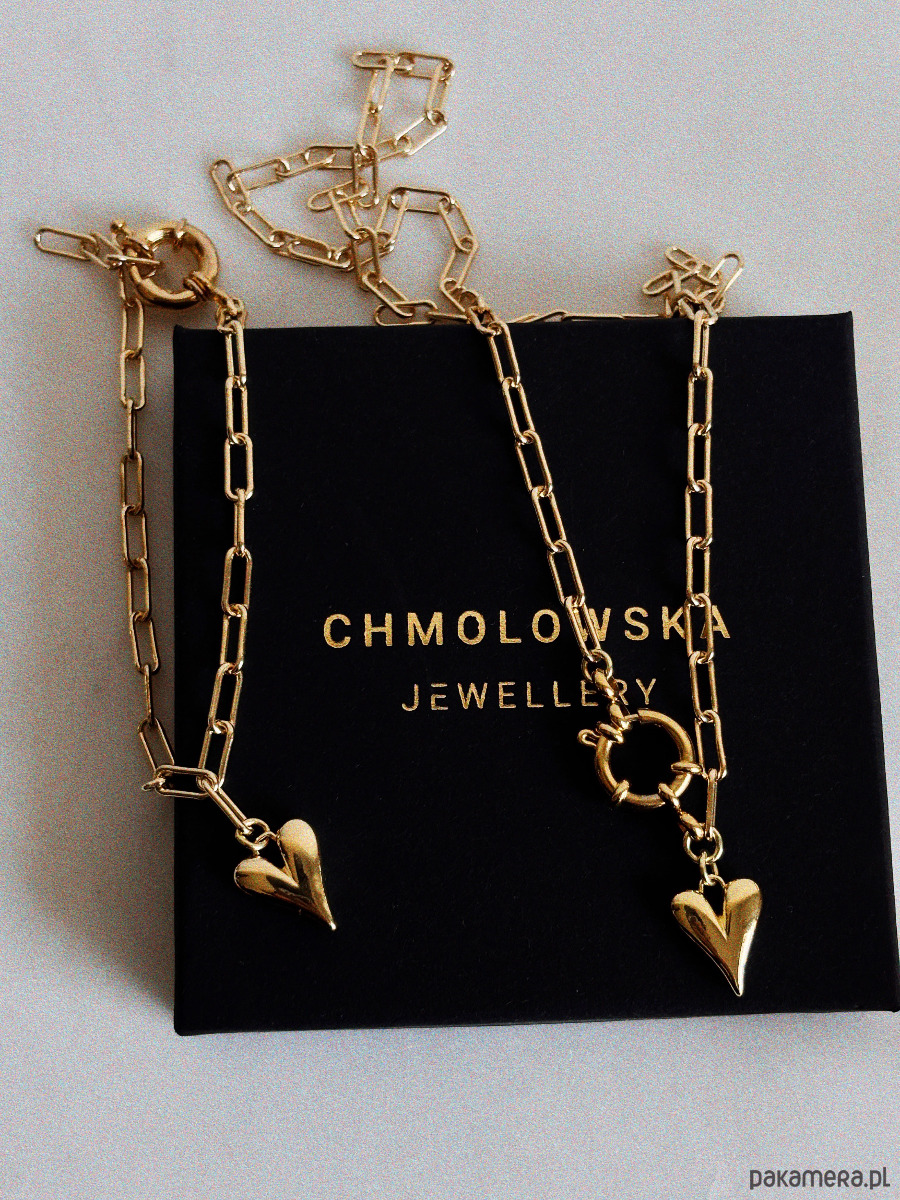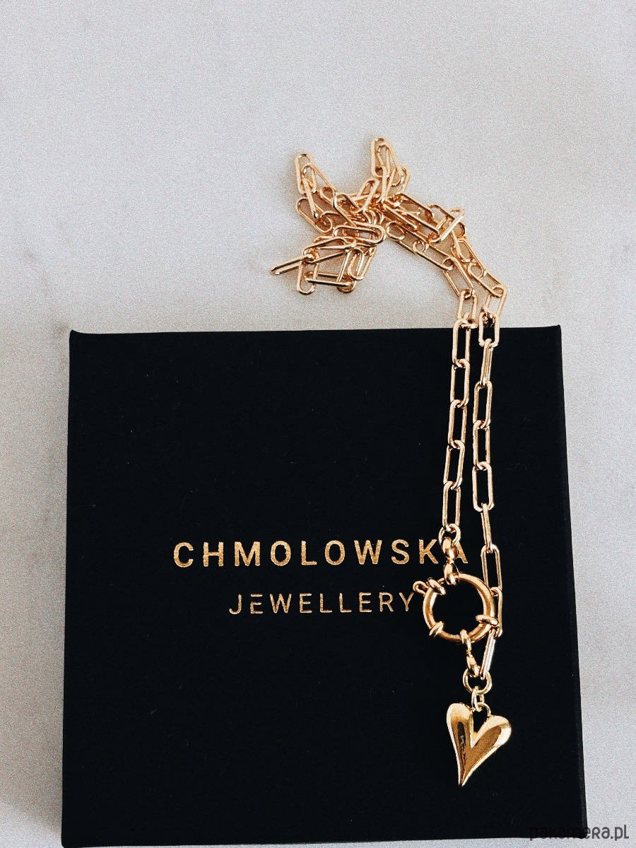 Naszyjnik wykonany jest łańcuszka,zapięcia i zawieszki rodowanego 14K złotem.