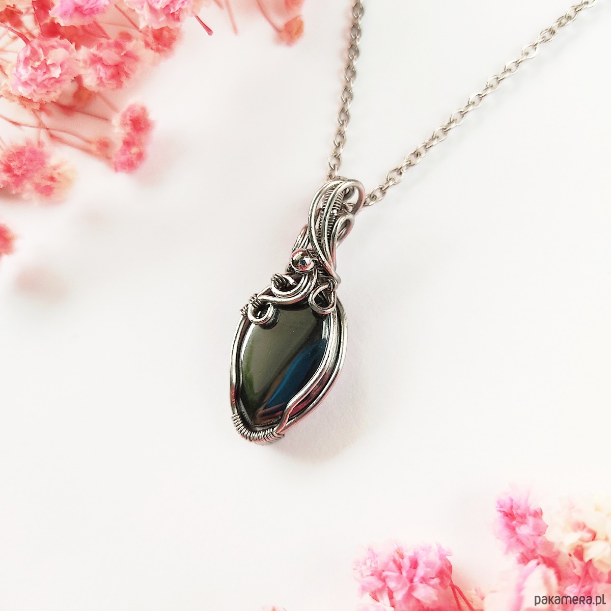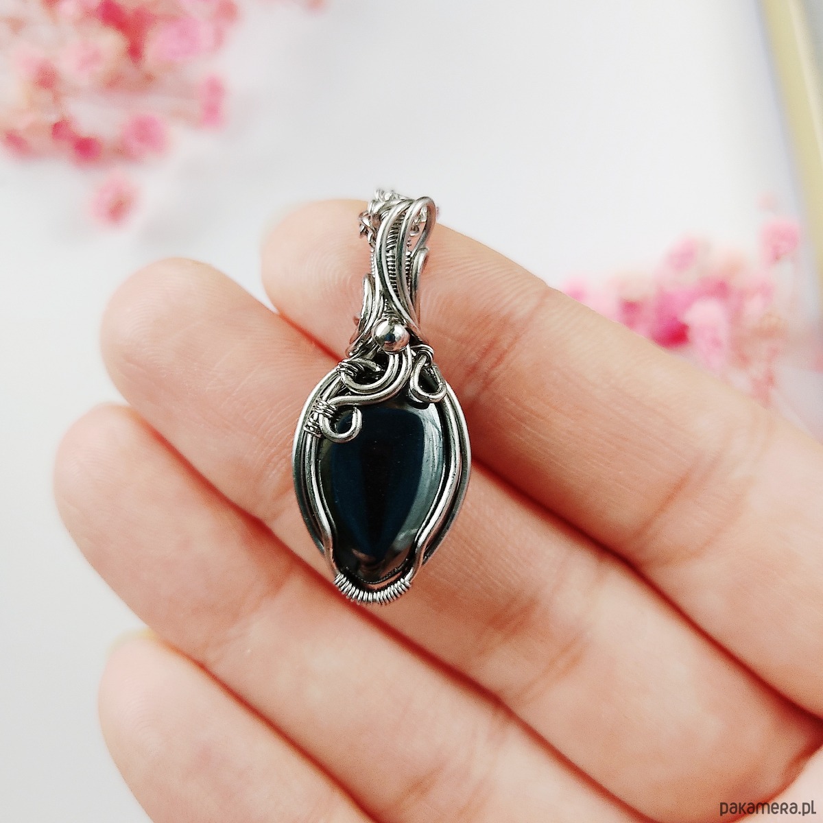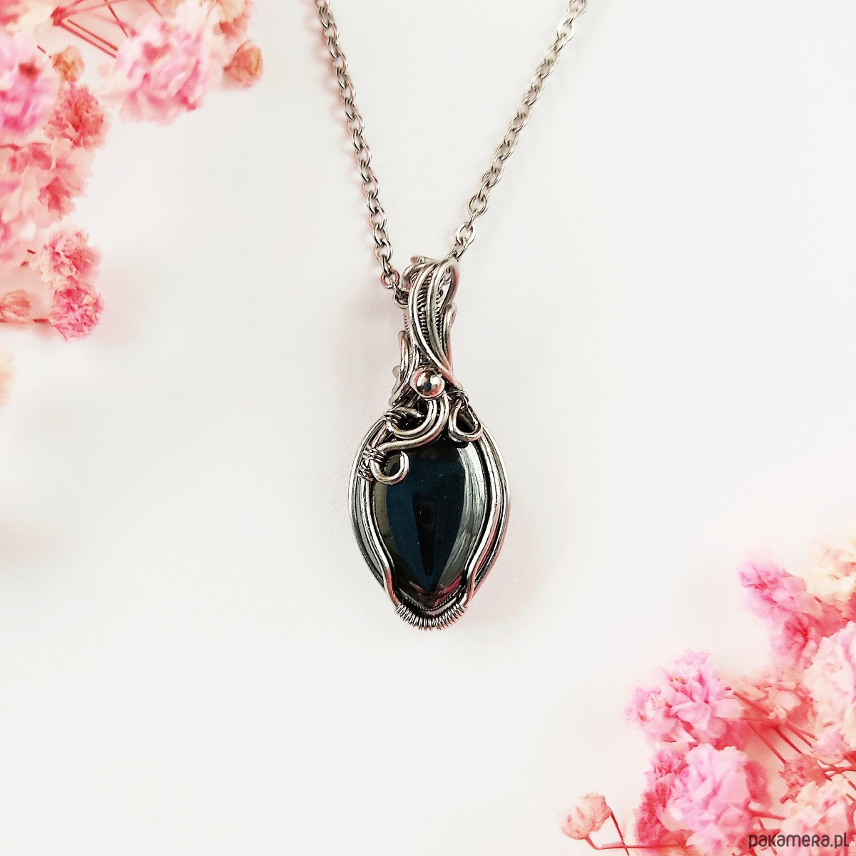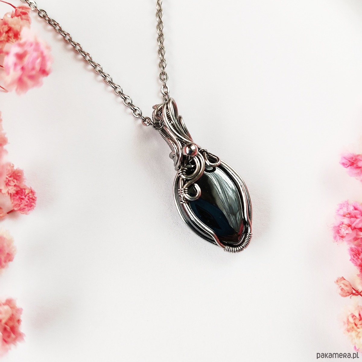 Naszyjnik Hematyt Srebrny stal chirurgiczna wisiorek handmade wirewrapping