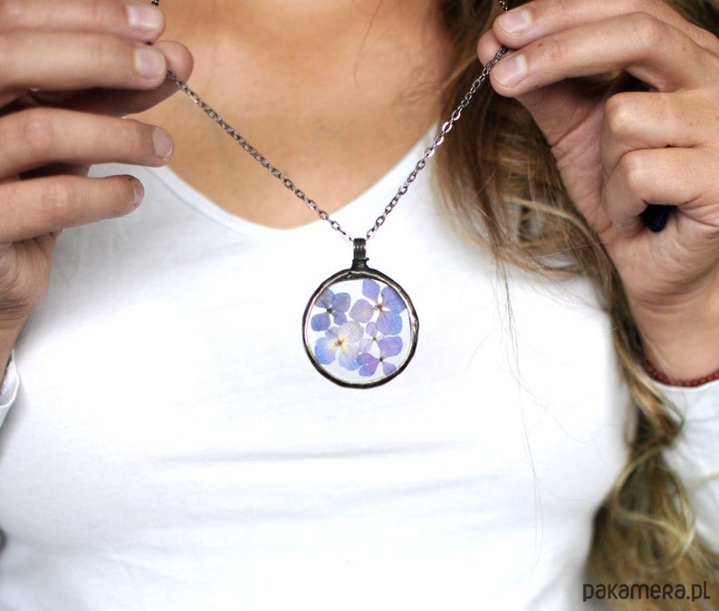 W naszyjniku zostały zamknięte jaskry, wrzos i inne.