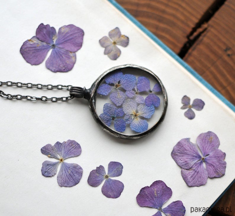 Delikatne kwiaty hortensji, w rozmaitych odcieniach niebieskiego zostały zebrane w moim ogrodzie i ususzone przeze mnie.