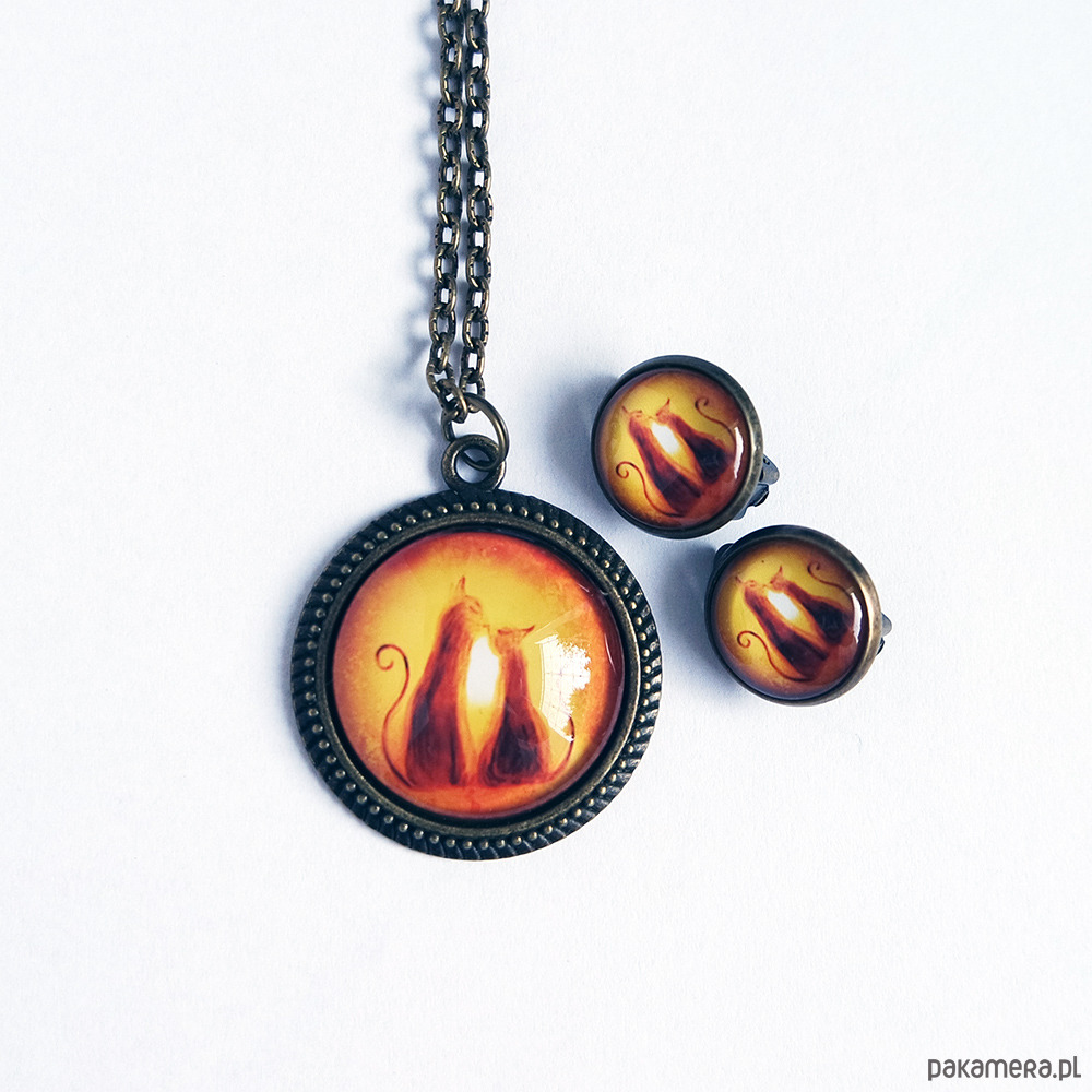 Naszyjnik i klipsy - komplet - Kotki