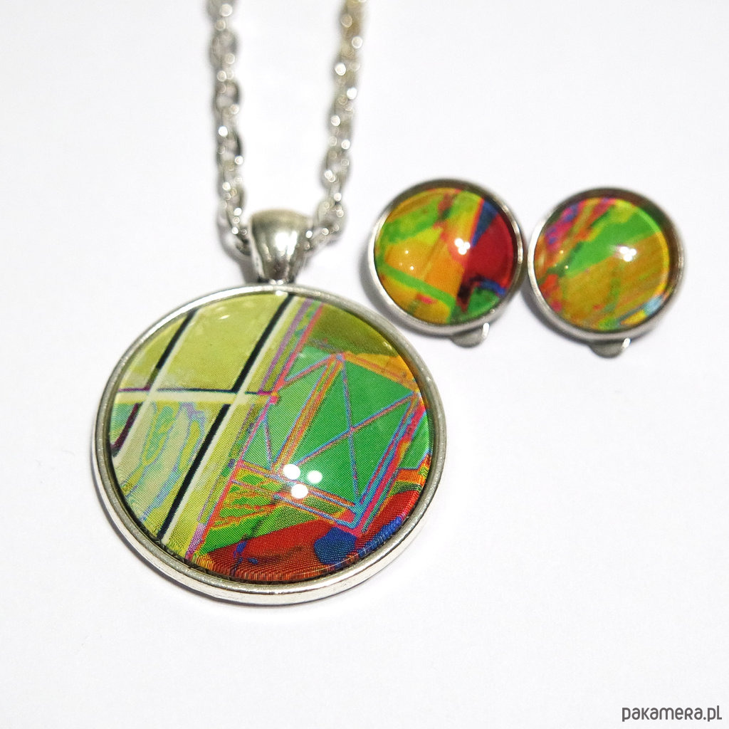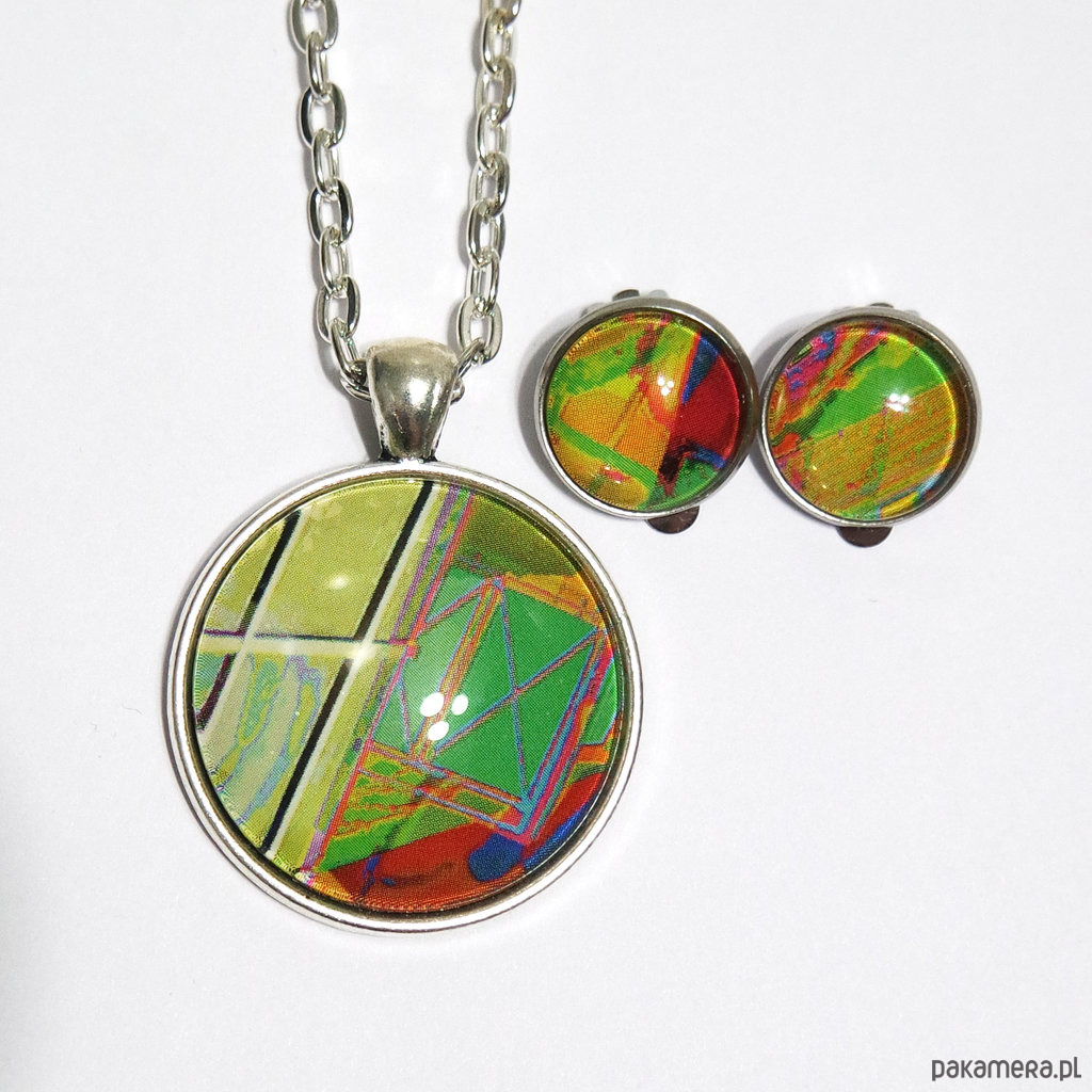 Naszyjnik i klipsy - komplet - Zielona abstrakcja