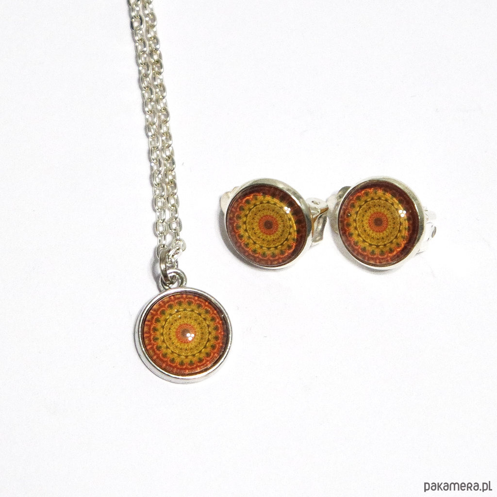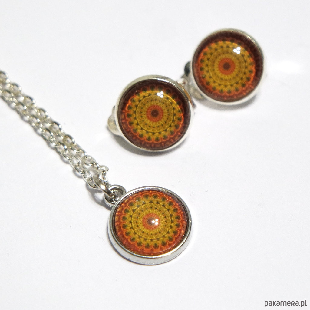 Naszyjnik i klipsy - Pomarańczowa mandala