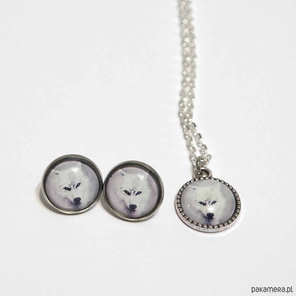Naszyjnik i kolczyki - Biały wilk, drzewko
