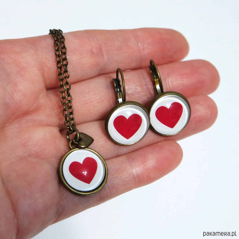 Naszyjnik i kolczyki - Czerwone serce, brąz