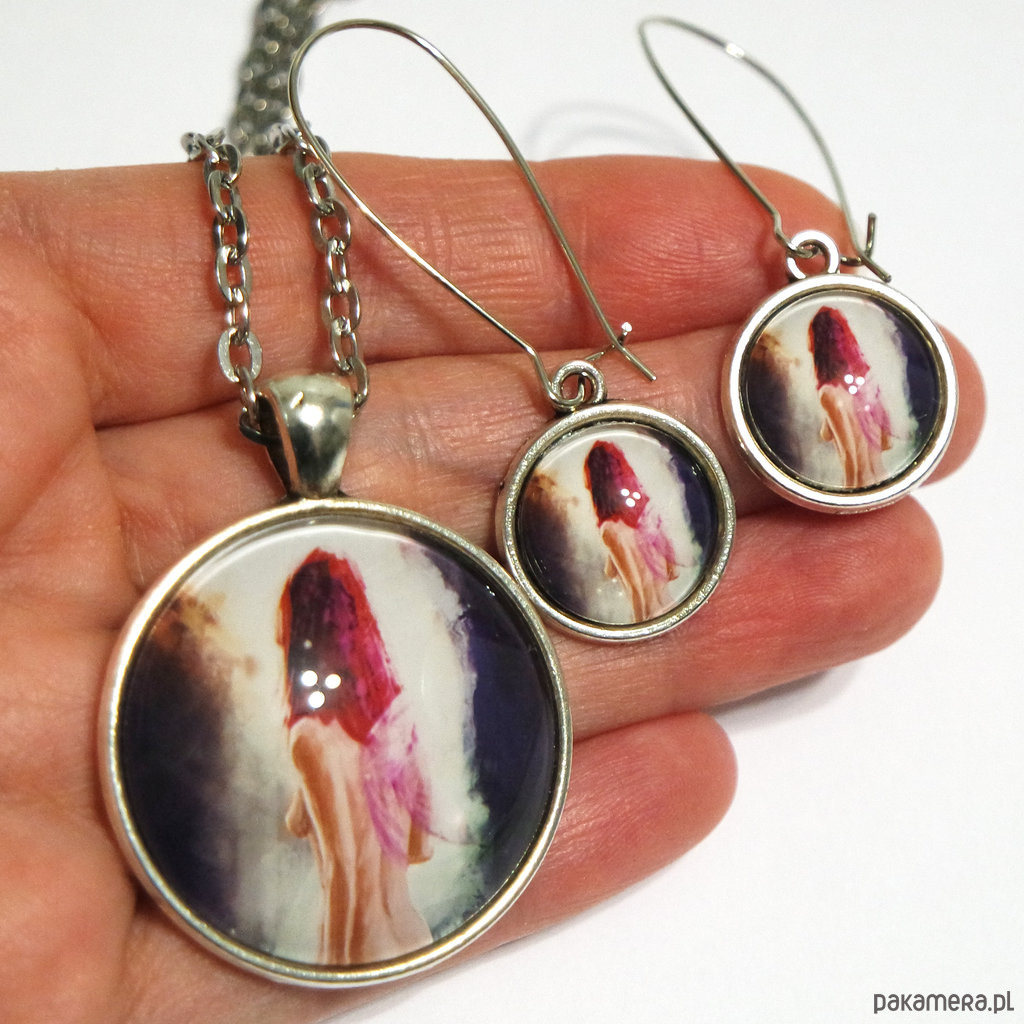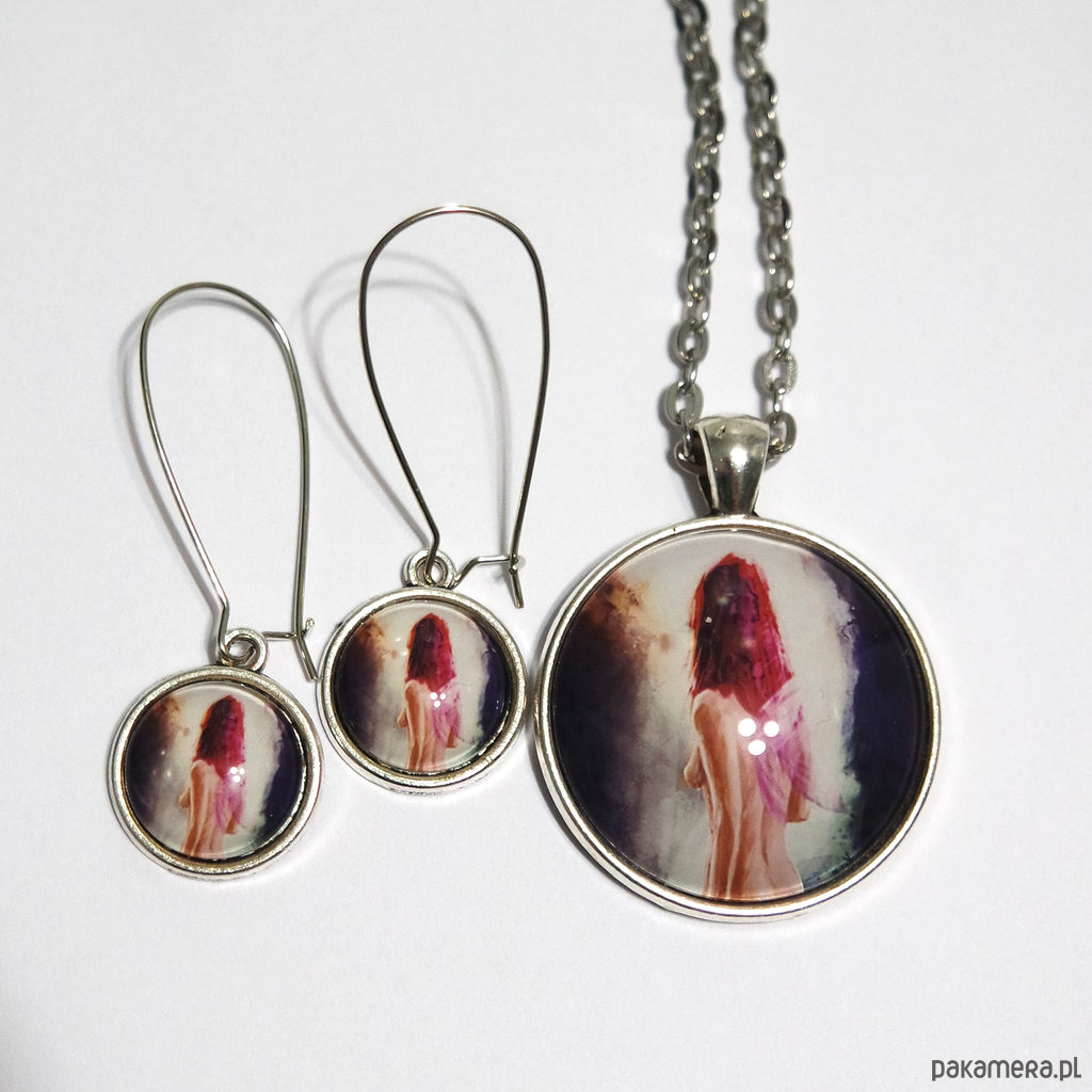 Niezwykły naszyjnik i kolczyki z naszą autorską grafiką.