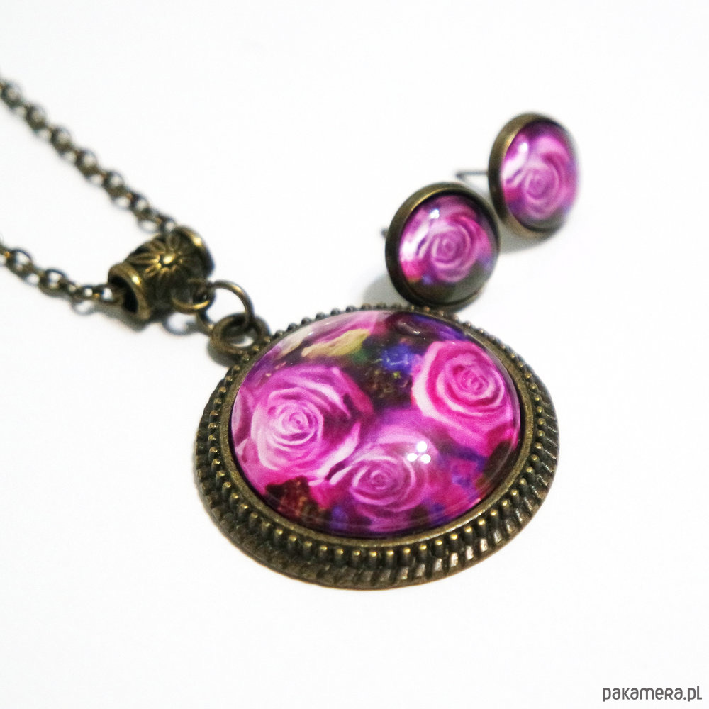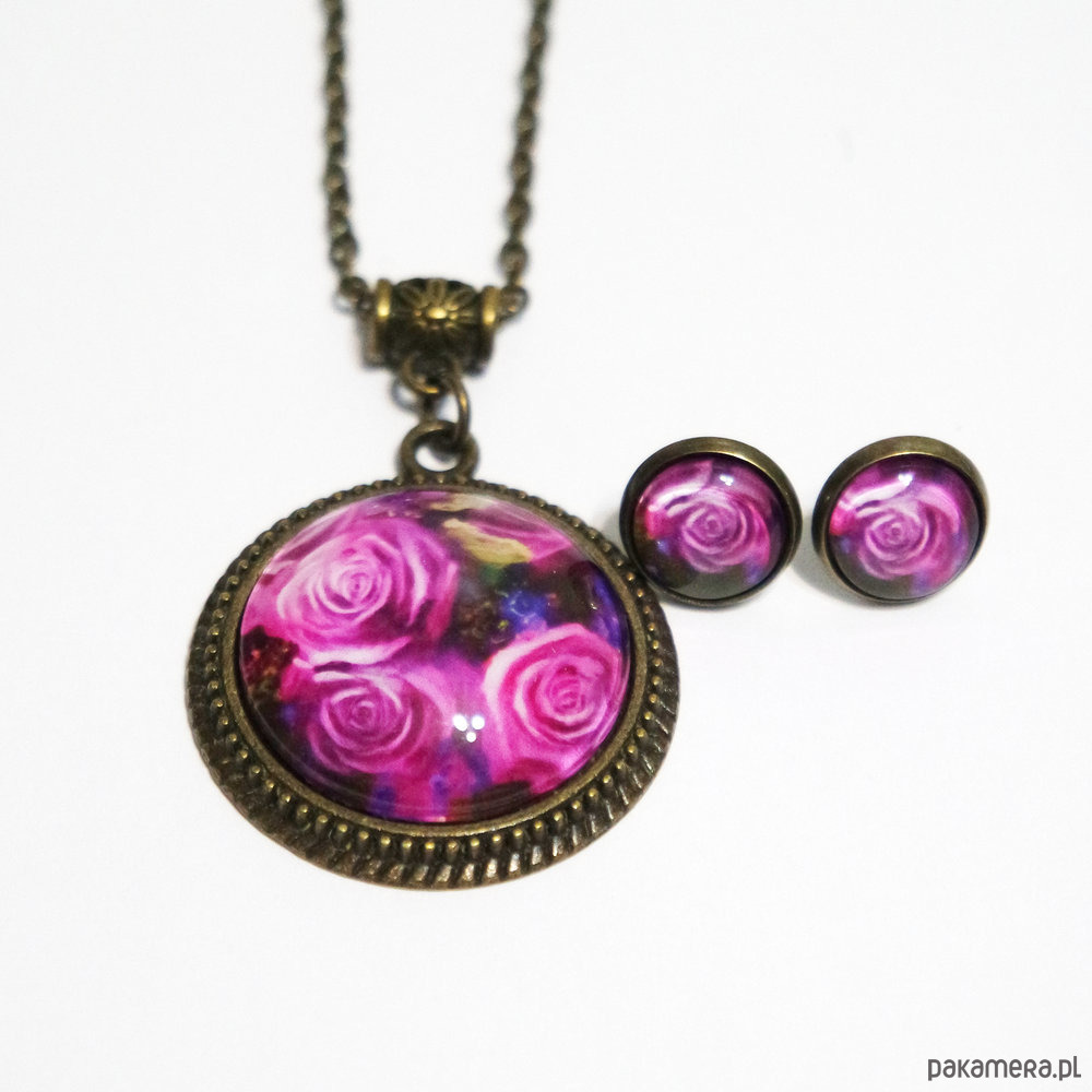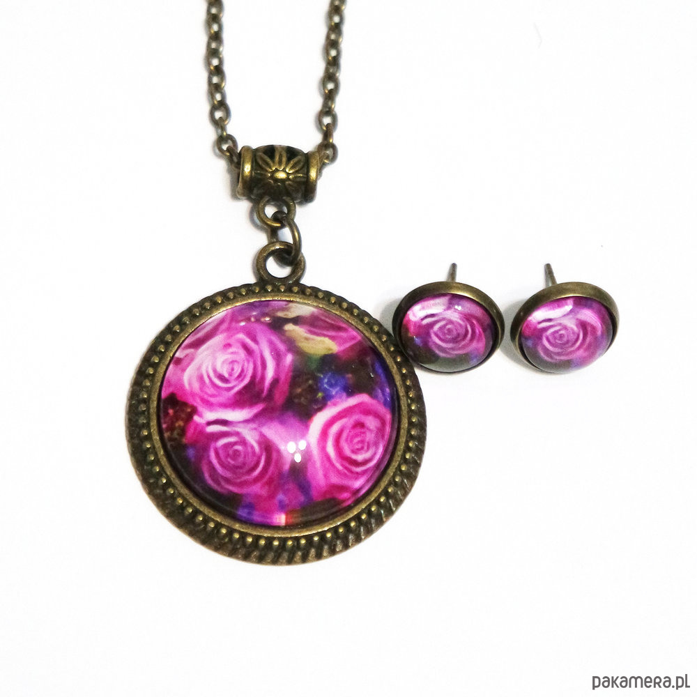 Naszyjnik i kolczyki - komplet - Różowe róże