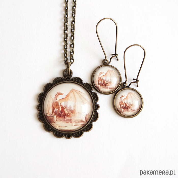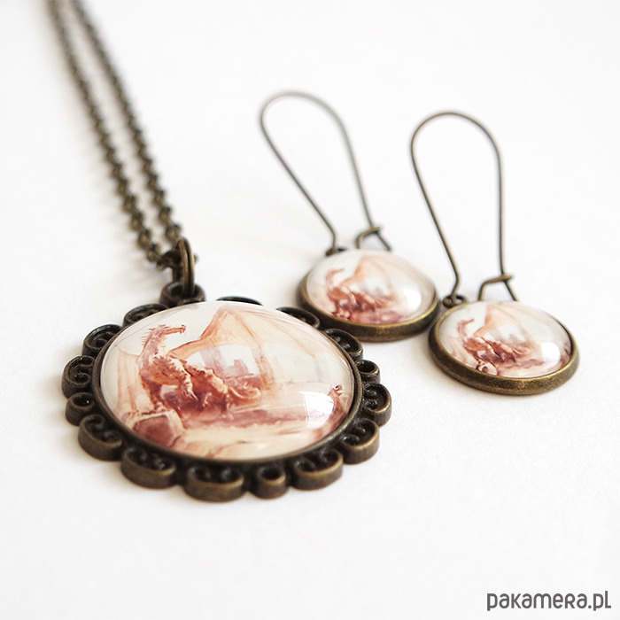 Niezwykły naszyjnik i kolczyki z naszą autorską grafiką.
