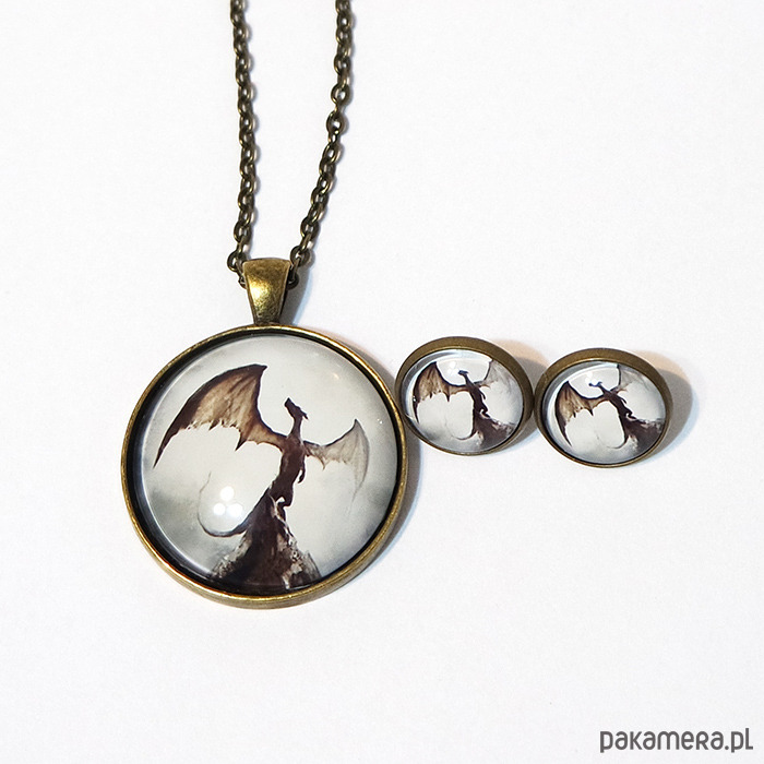 Naszyjnik i kolczyki - Smok cienia - brąz