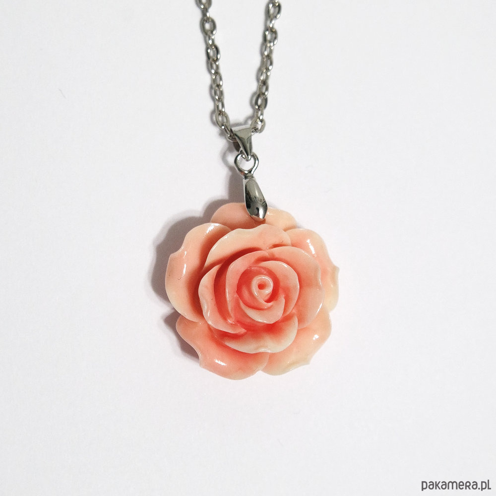 Średnica róży w naszyjniku ok.2,5 cm. Długość łańcuszka ok.46 cm.