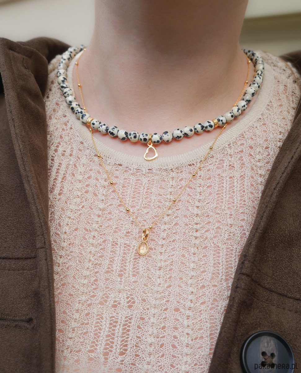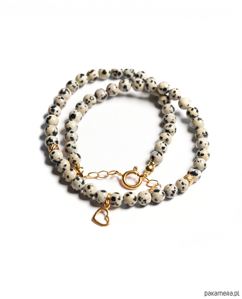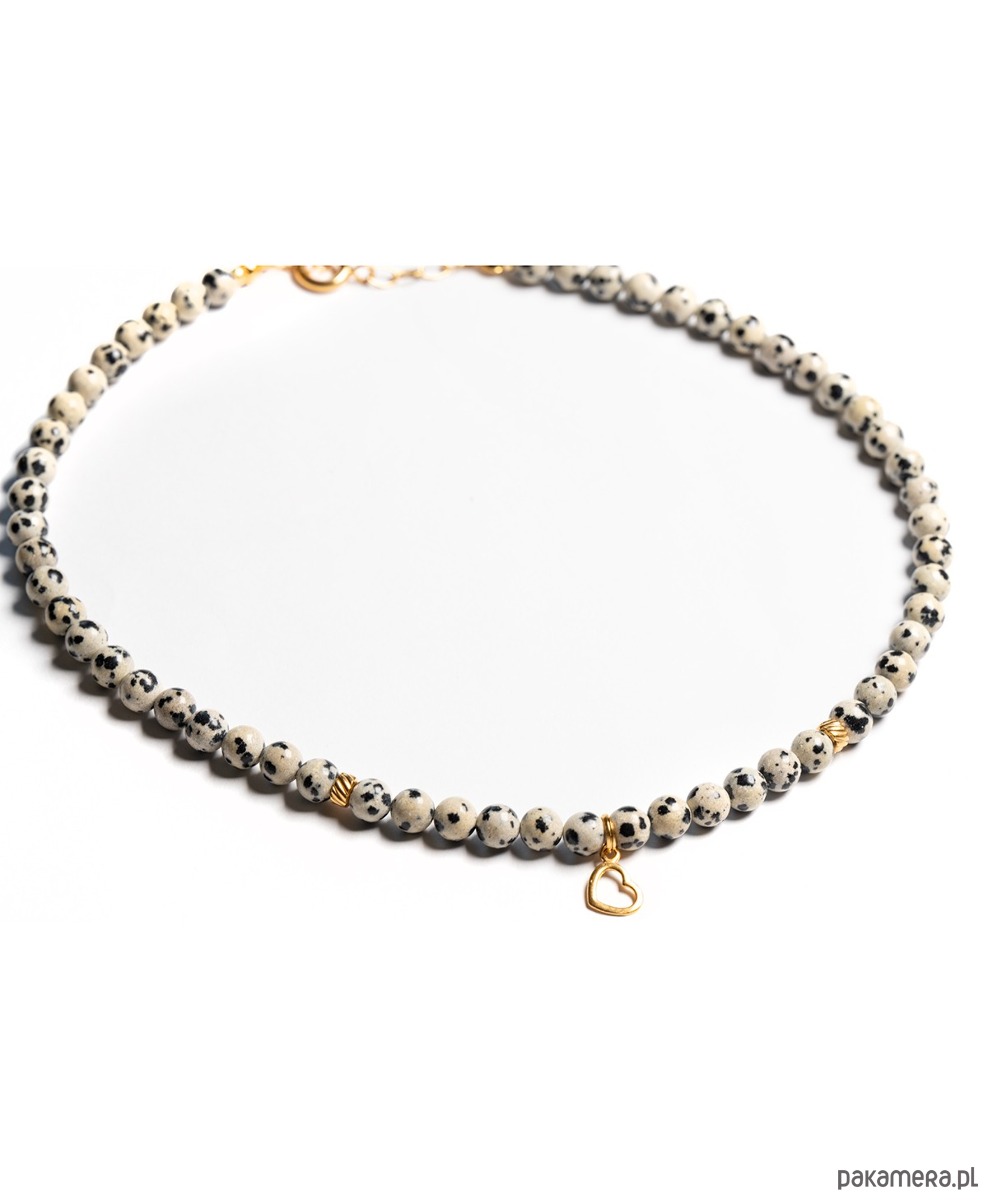 Ten naszyjnik przyciąga spojrzenia! To połączenie subtelnej nowoczesności i naturalnej elegancji. Wykonałam go z naturalnych kamieni jaspisu dalmatyńczyka oraz srebra próby 925 złoconego 24k złotem. Klasyczne zapięcie i łańcuszek umożliwiają regulację długości. Idealny naszyjnik dla osoby, która ceni unikalny design.