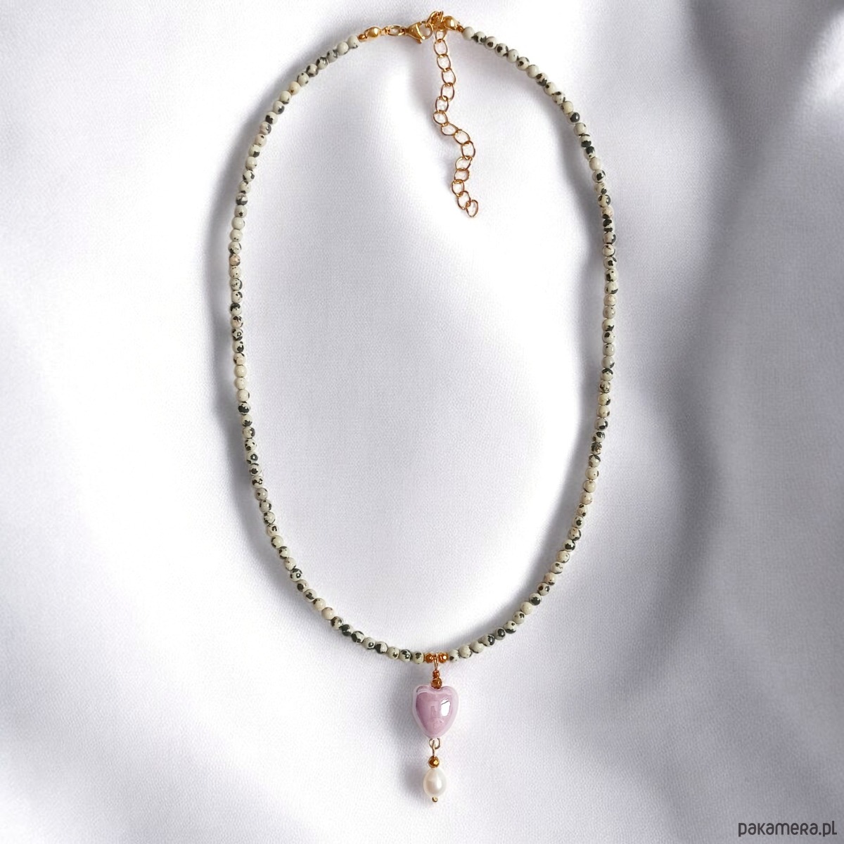 Naszyjnik : jaspis dalmatyński, serce ceramiczne, perła