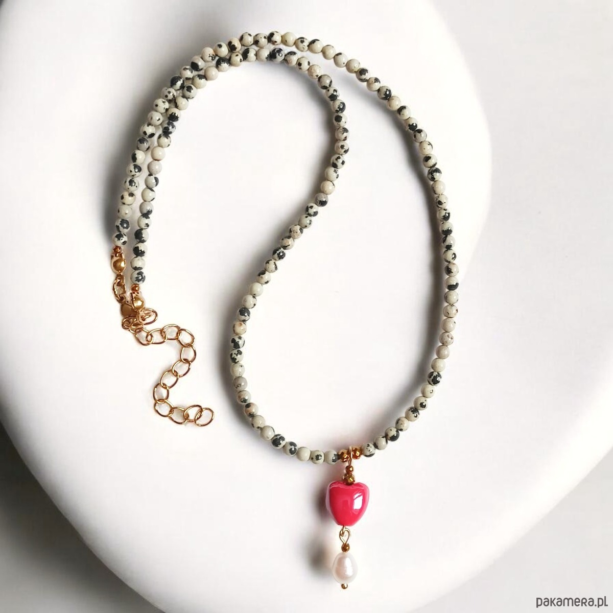 Naszyjnik : jaspis dalmatyński, serce ceramiczne, perła