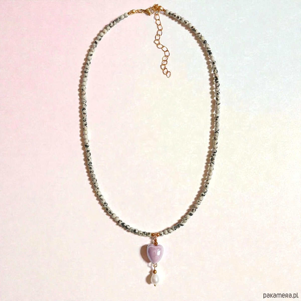 Naszyjnik : jaspis dalmatyński, serce ceramiczne, perła