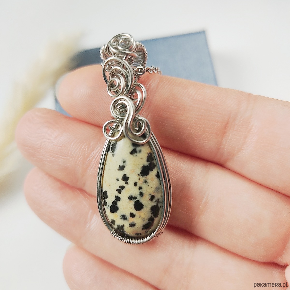 Naszyjnik Jaspis Dalmatyński stal chirurgiczna wisiorek handmade wirewrapping