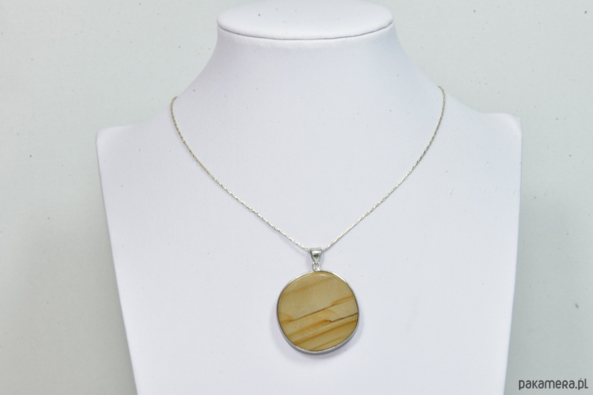 Delikatny naszyjnik z wyjątkowego kamienia jaspisu . Delikatny jasny brąz z nieznacznie ciemniejszymi refleksami w połączeniu z delikatnym łańcuszkiem w kolorze srebra tworzą idealną całość. Naszyjnik prezentuje się idealnie i na pewno pięknie ozdobi niejedną kreację.