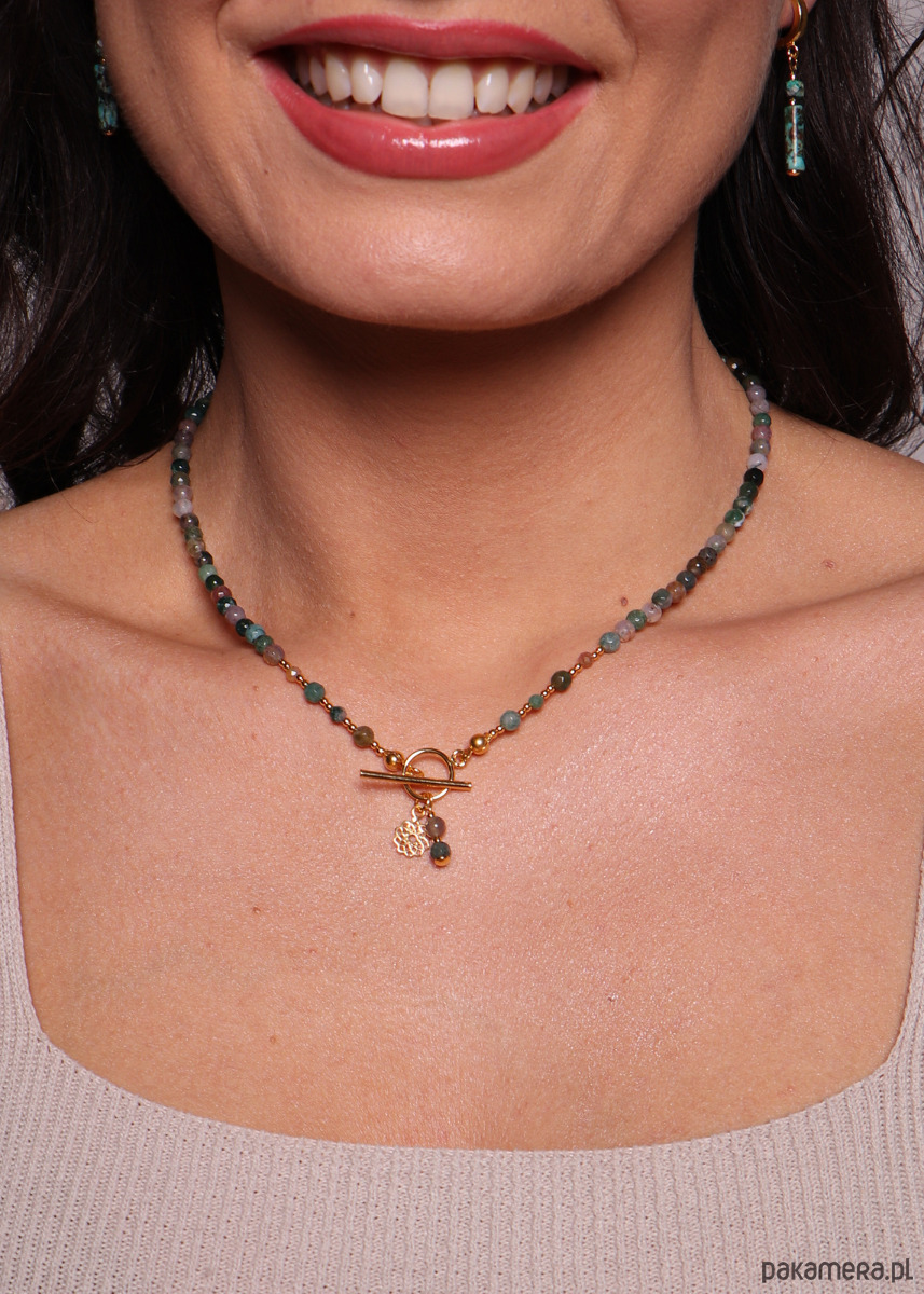 Naszyjnik będzie idealnym pomysłem na prezent. Biżuteria, ręcznie wykonywana z kamieni naturalnych wpisuje się w obecne trendy, dzięki czemu możesz mieć pewność, że zachwyci obdarowaną osobę. Nasz naszyjnik z kamieniami naturalnymi jest uniwersalnym, eleganckim elementem ubioru, który obłędnie wyglądać będzie w zestawieniu z każdą stylizacją.