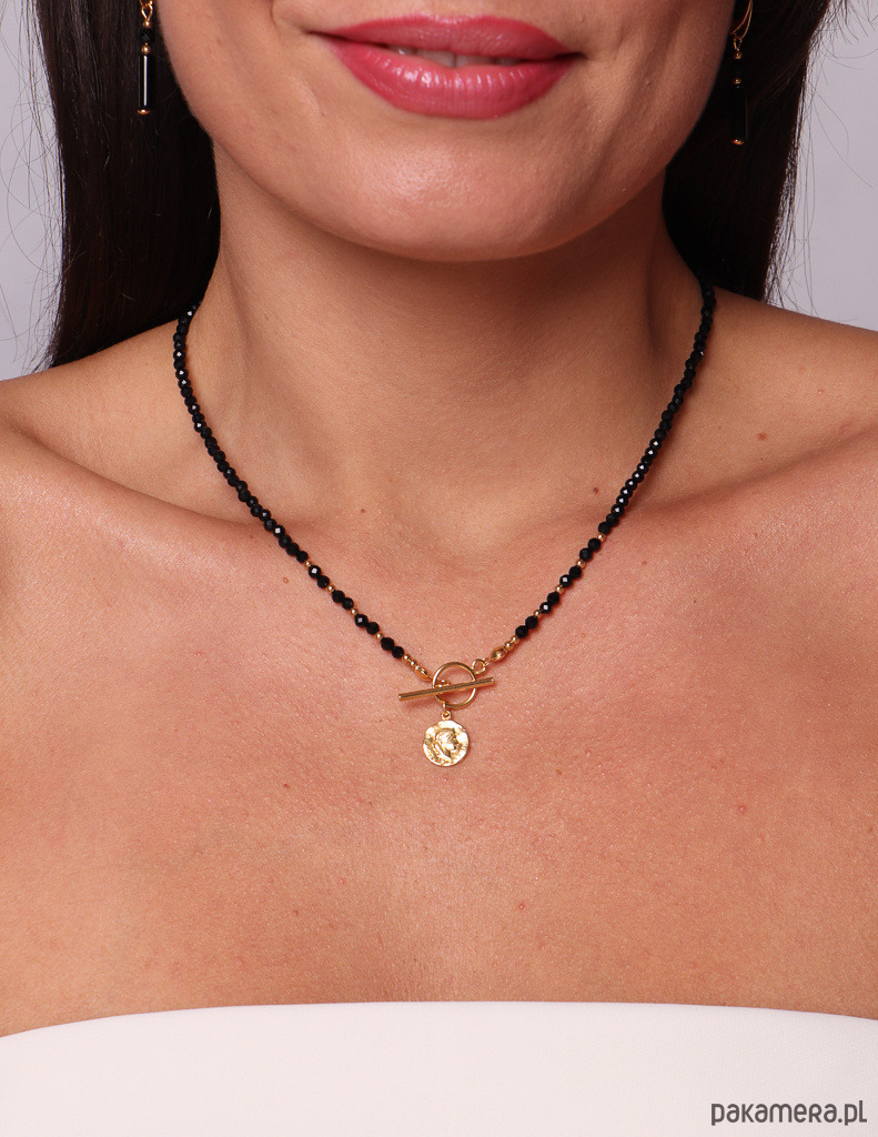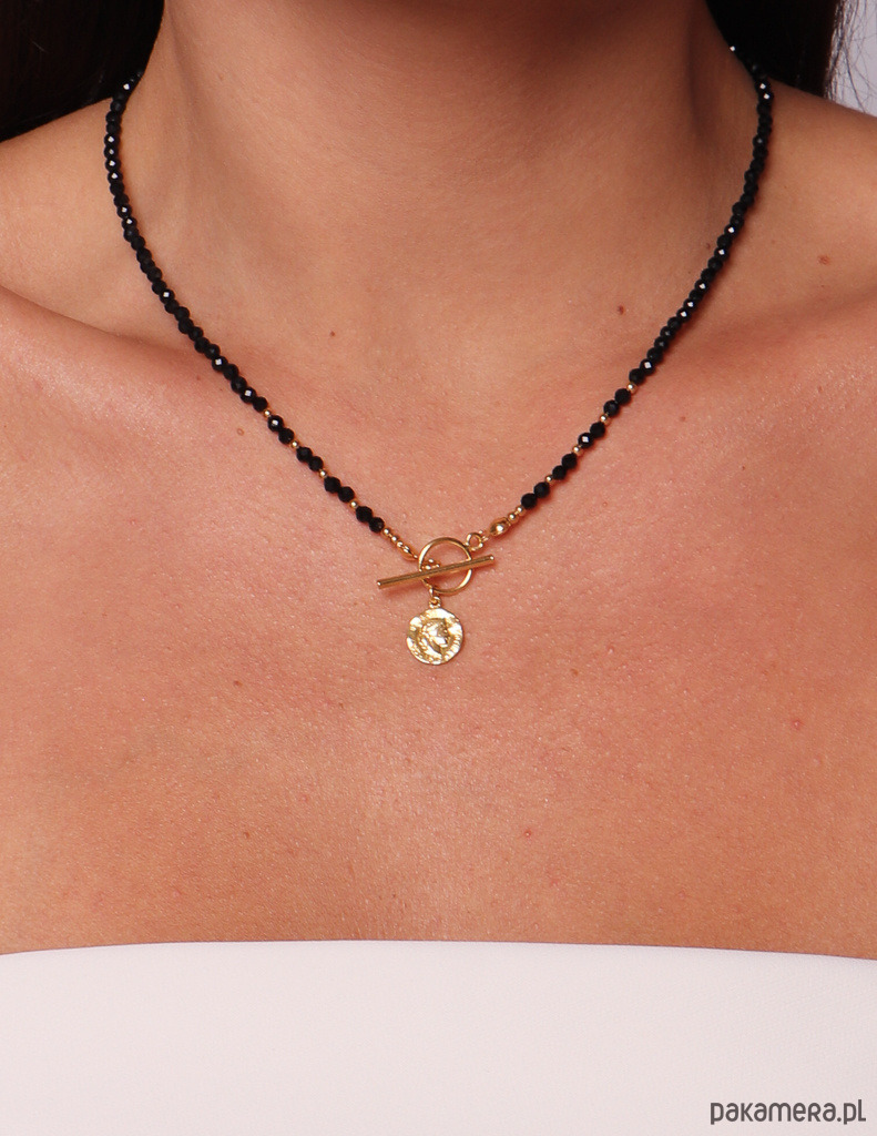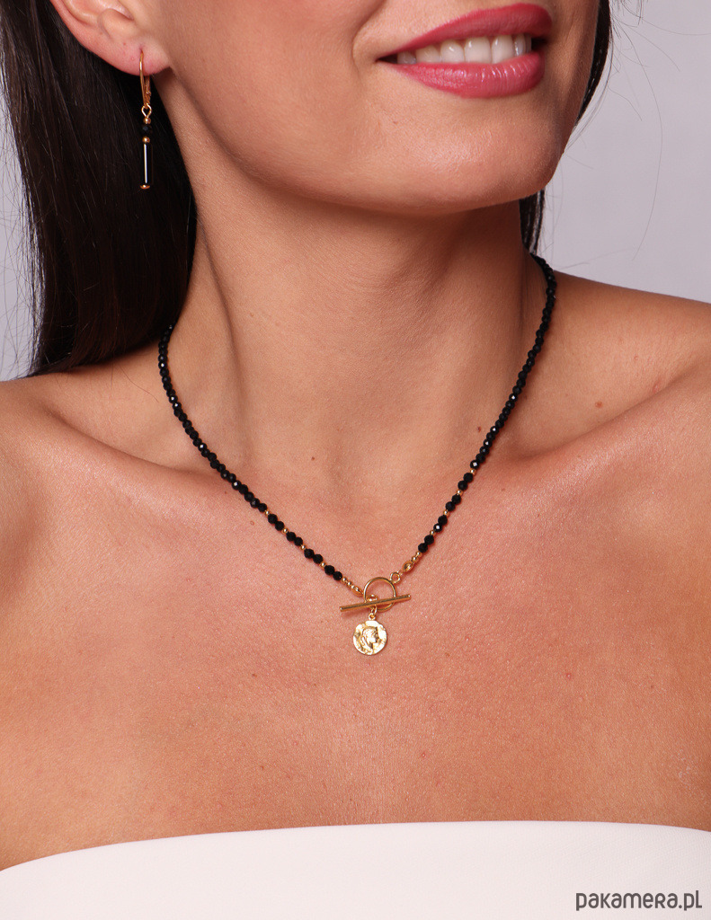 Poznaj naszyjnik, który łączy w sobie subtelną elegancję i nowoczesny charakter. Ręcznie wykonany z kamieni naturalnych przeplatanych pozłacanym hematytem, wykończony jest trwałym zapięciem typu toggle ze srebra 925 pozłacanego 24-karatowym złotem. Każdy detal został dopracowany w naszej pracowni, dzięki czemu naszyjnik prezentuje się wyjątkowo szlachetnie i przyciąga uwagę swoim minimalistycznym blaskiem.