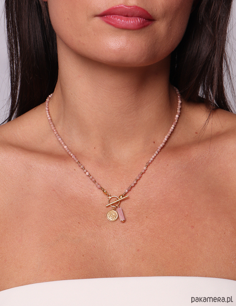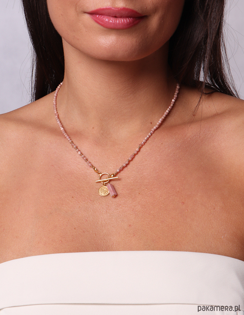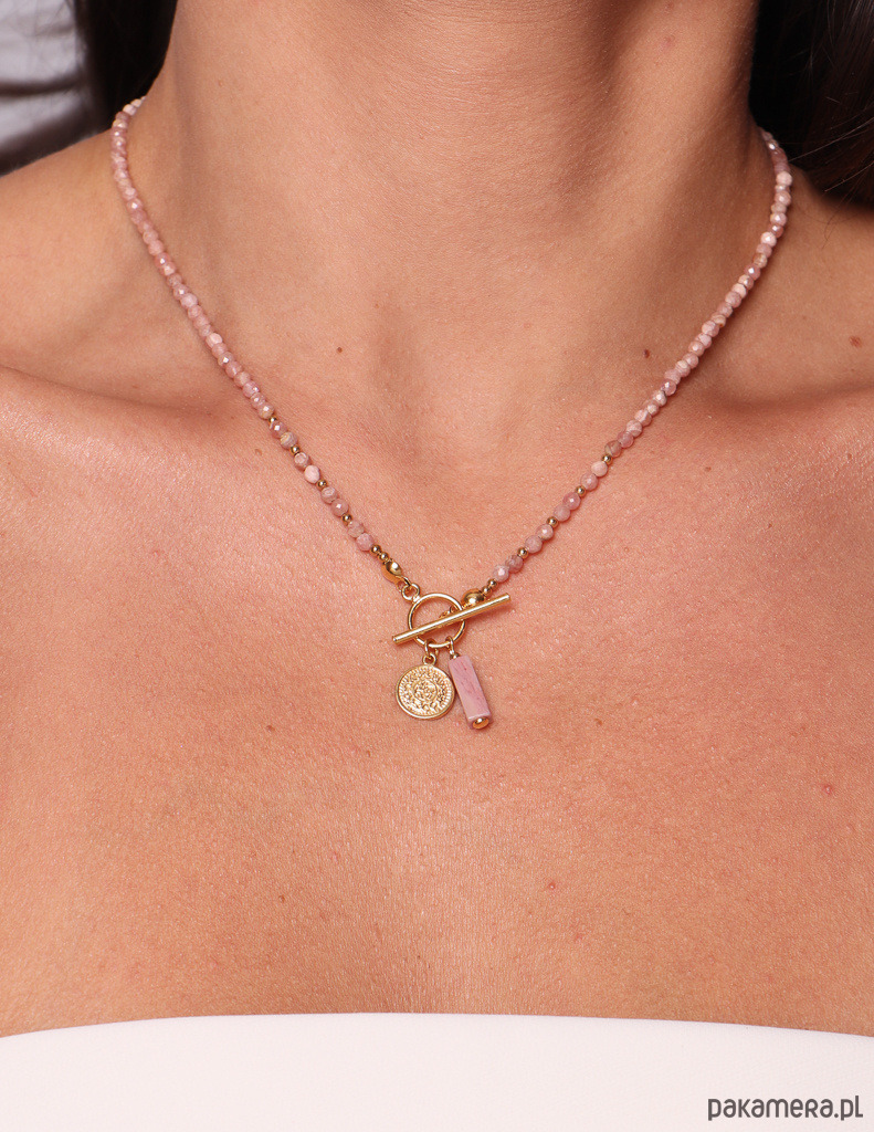 Naszyjnik kamień naturalny rodochrozyt toggle z zawieszką