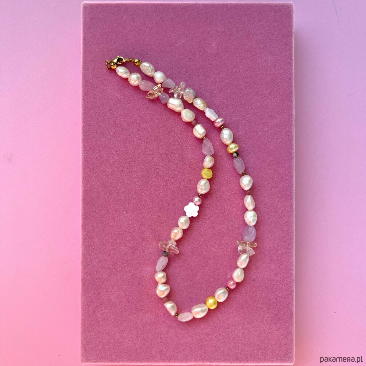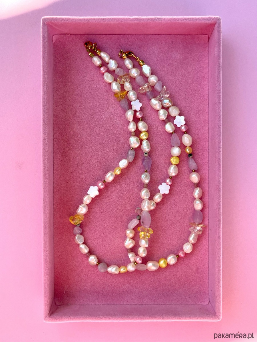 Naszyjnik z pereł z dodatkiem pastelowych kamieni naturalnych