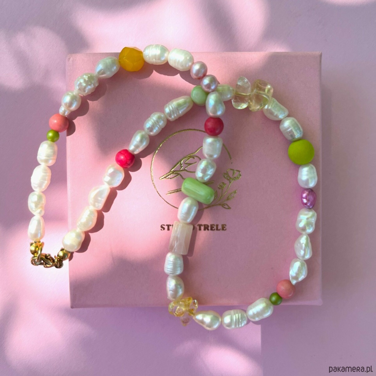 Skład: perła słodkowodna, cytryn, koral, agat, howlit, szkło
