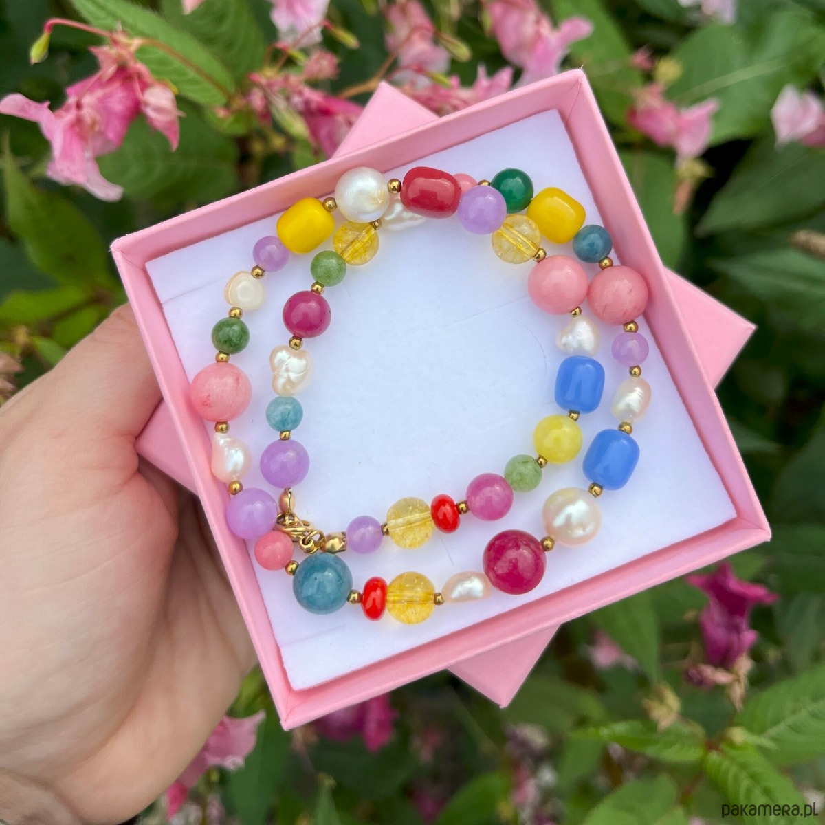 Skład: jadeit, cytryn, perła słodkowodna, koral, szkło, hematyt
