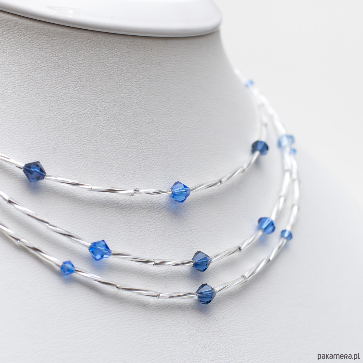 Poznaj "Sapphire" – ręcznie robioną, wielorzędową kolię, która odzwierciedla głębię szafiru i czystość srebra.