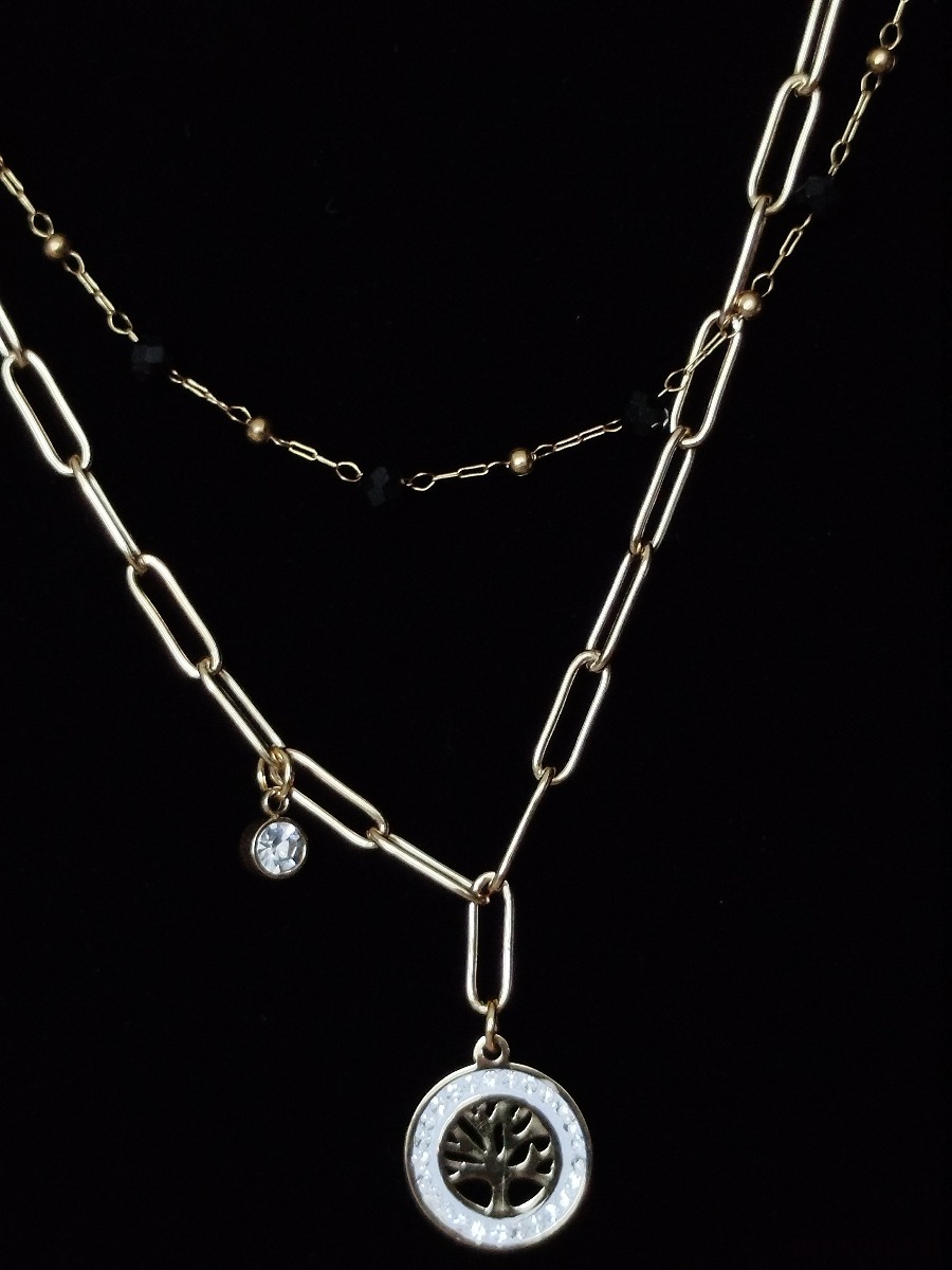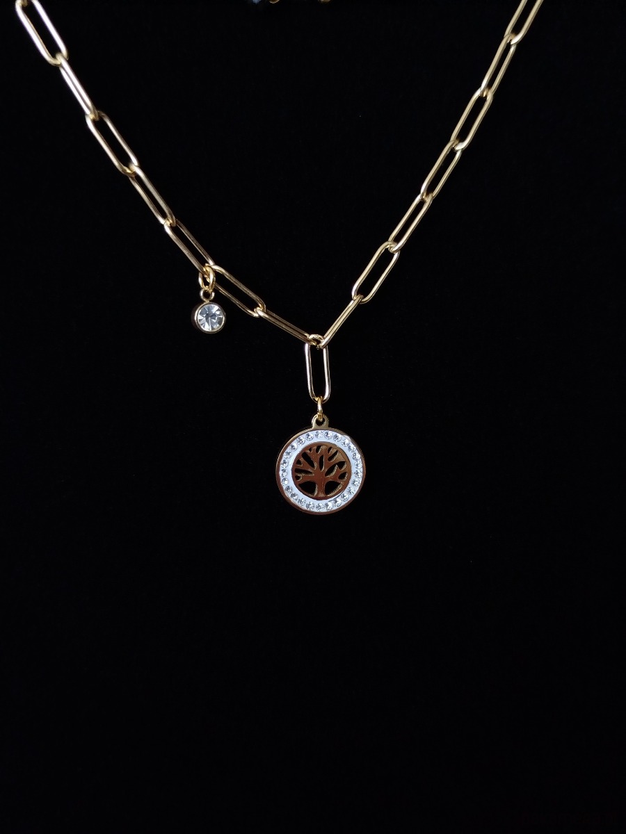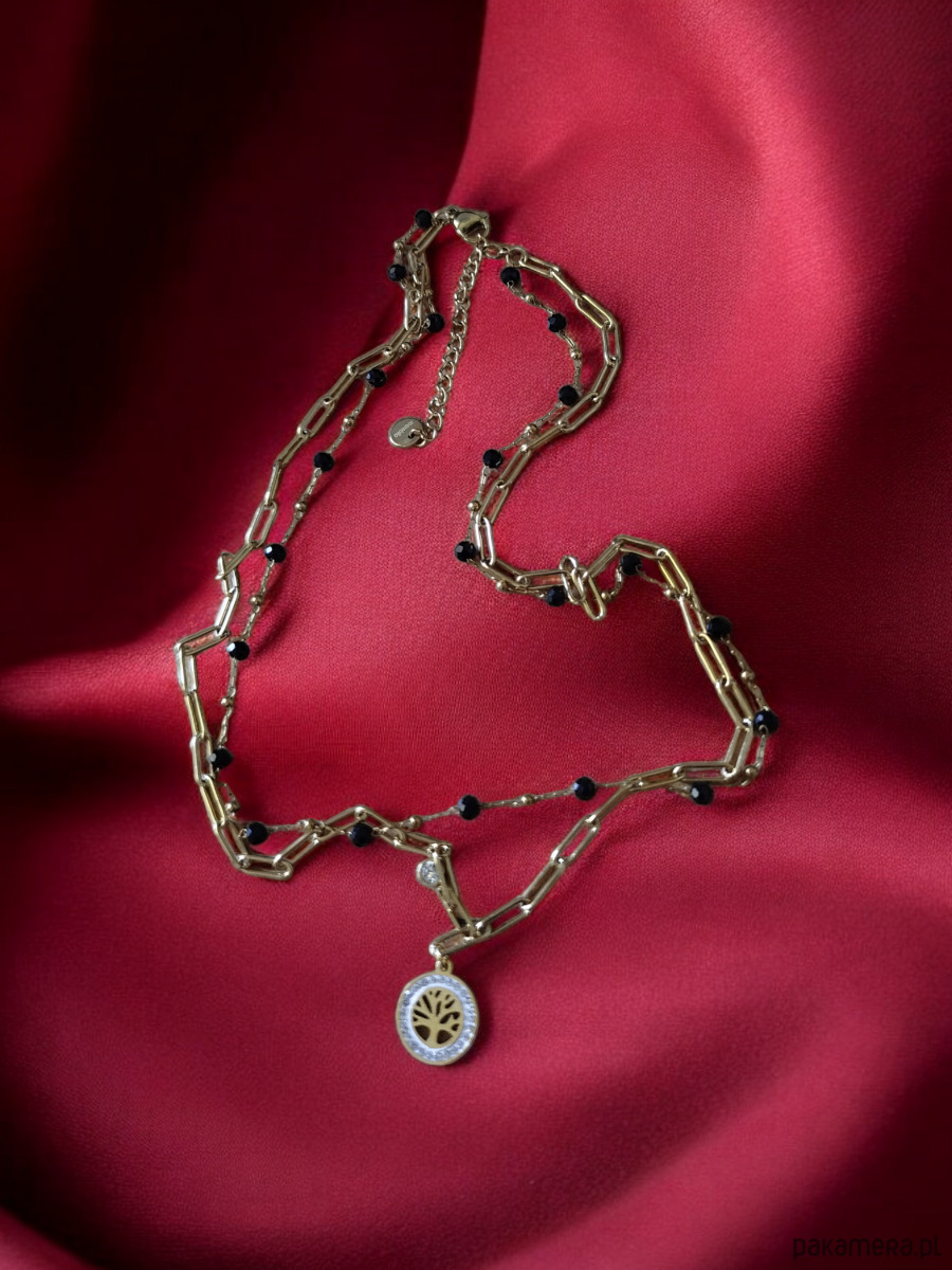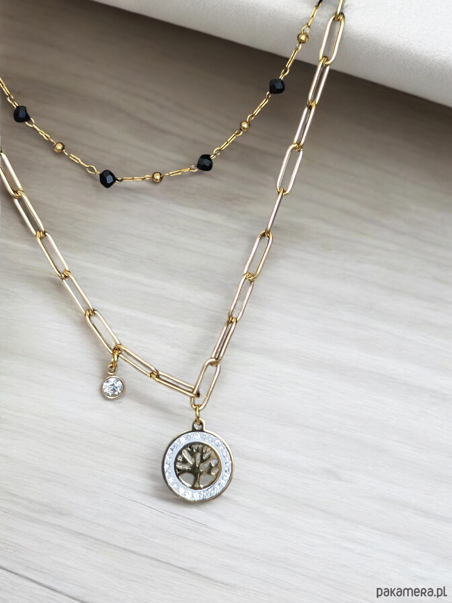 Naszyjnik kaskadowy z motywem drzewa - pozłacana stal chirurgiczna