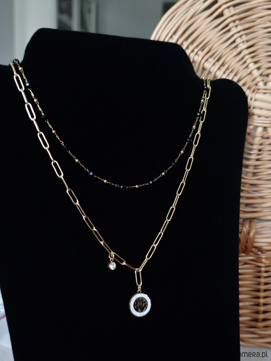 Naszyjnik kaskadowy wykonany ze stali chirurgicznej 316L pozłacany.