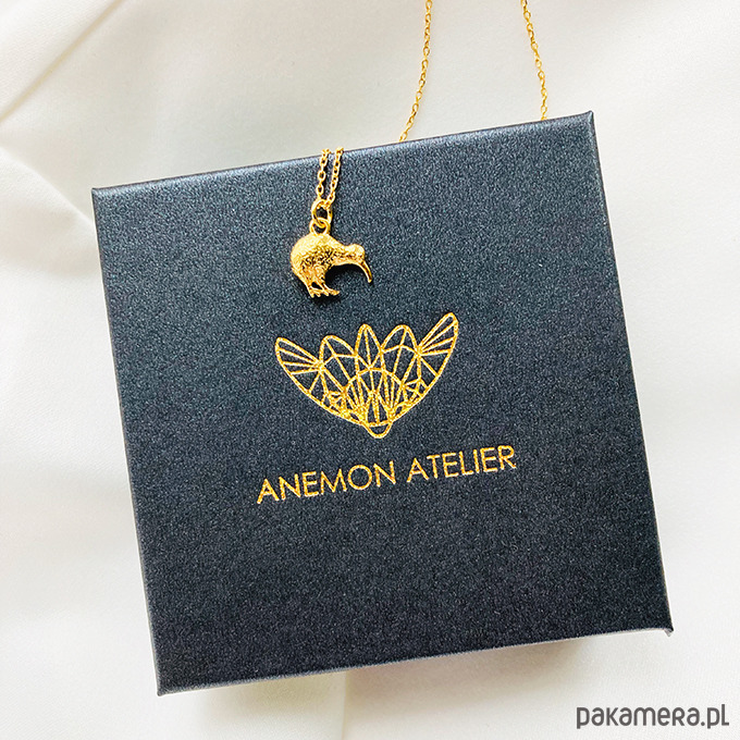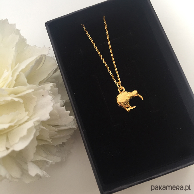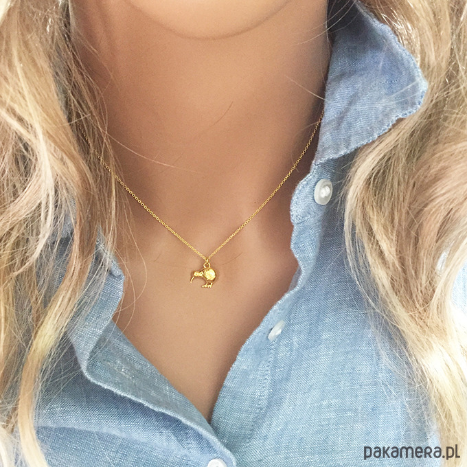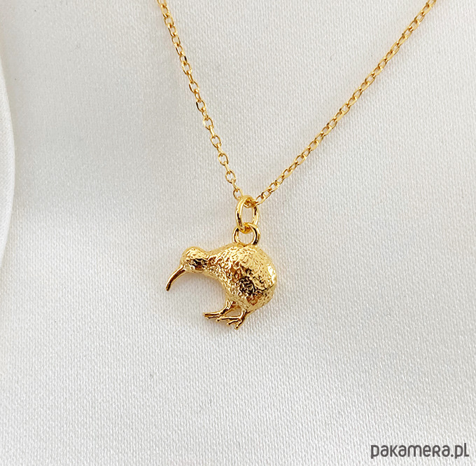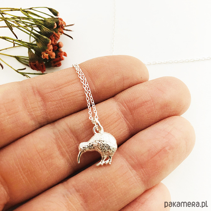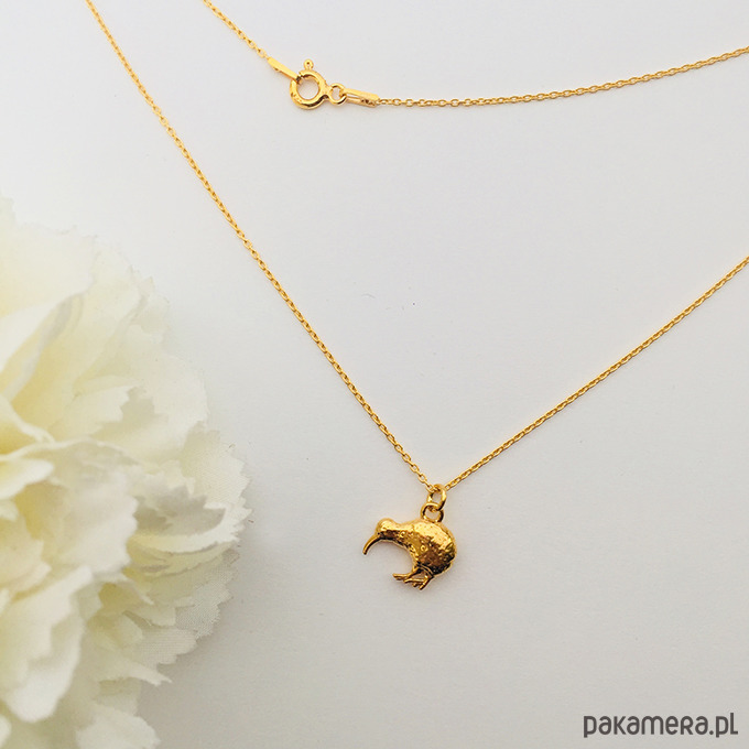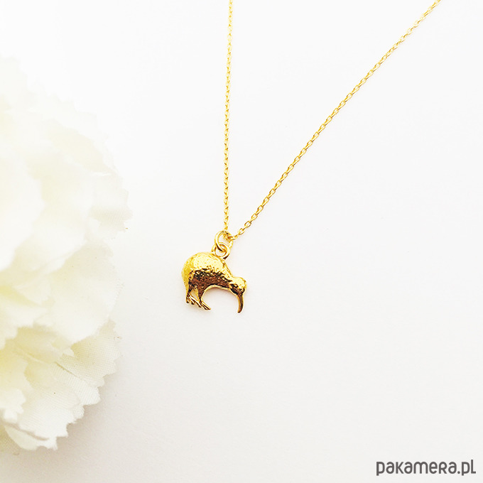Piękny naszyjnik z wyjątkową zawieszką w kształcie ptaka kiwi. Wykonany ze srebra próby 925. Dostępne złocony 24 k złotem