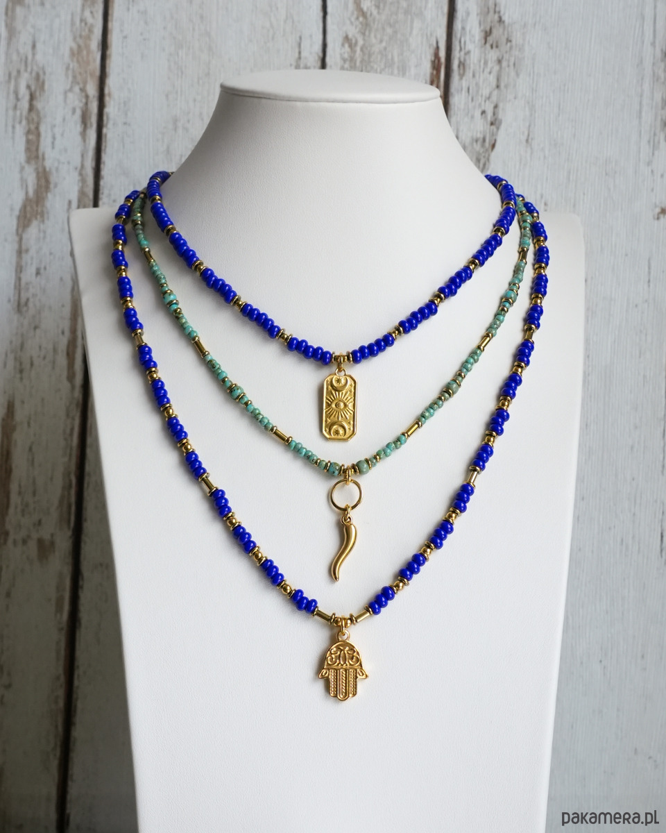 Naszyjnik może być noszony solo, jak i w połączeniu z innymi kolorowymi naszyjnikami lub złotymi łańcuszkami i wisiorkami różnej długości, ułożonymi kaskadowo. Im więcej, tym lepiej :)