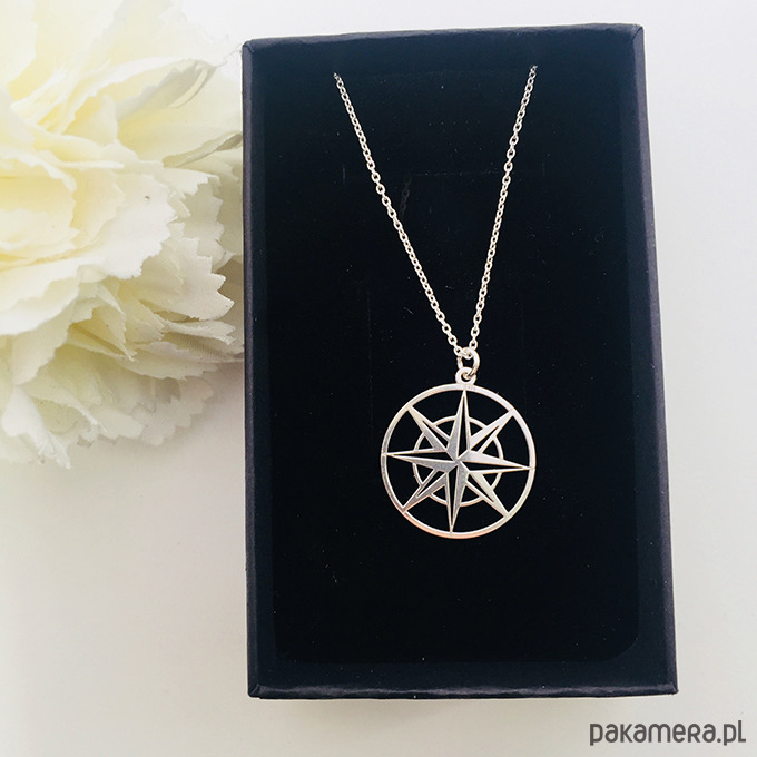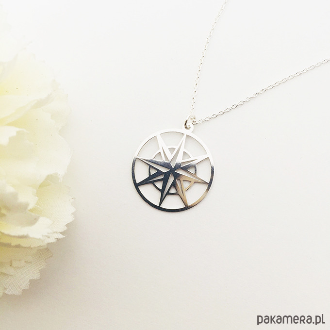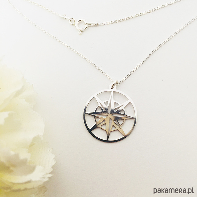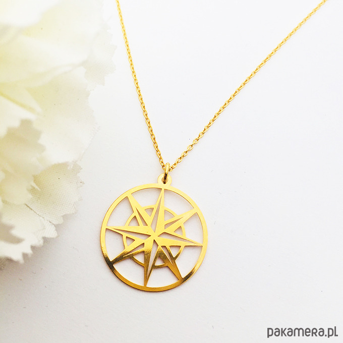 Efektowny naszyjnik z dość dużą zawieszką w kształcie kompasu. Ten piękny naszyjnik jest wykonany ze srebra próby 925 złocony 24 k złotem, lub ze srebra 925.