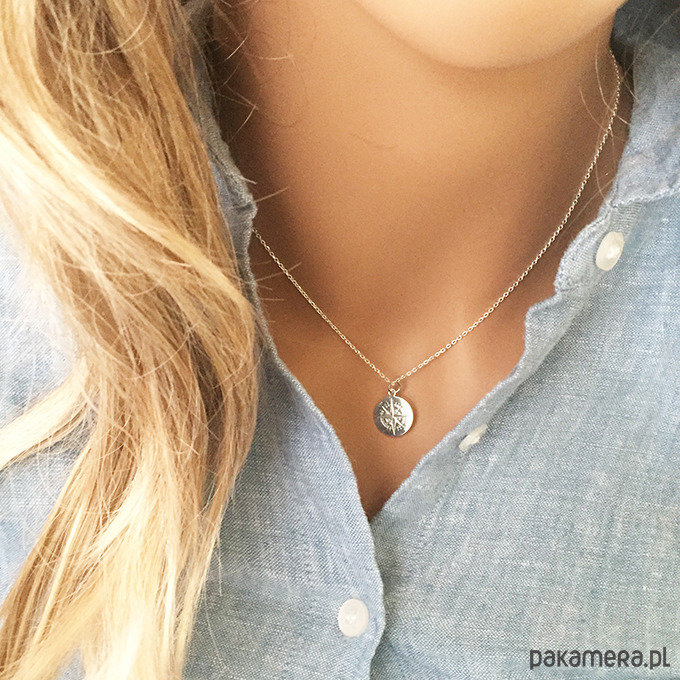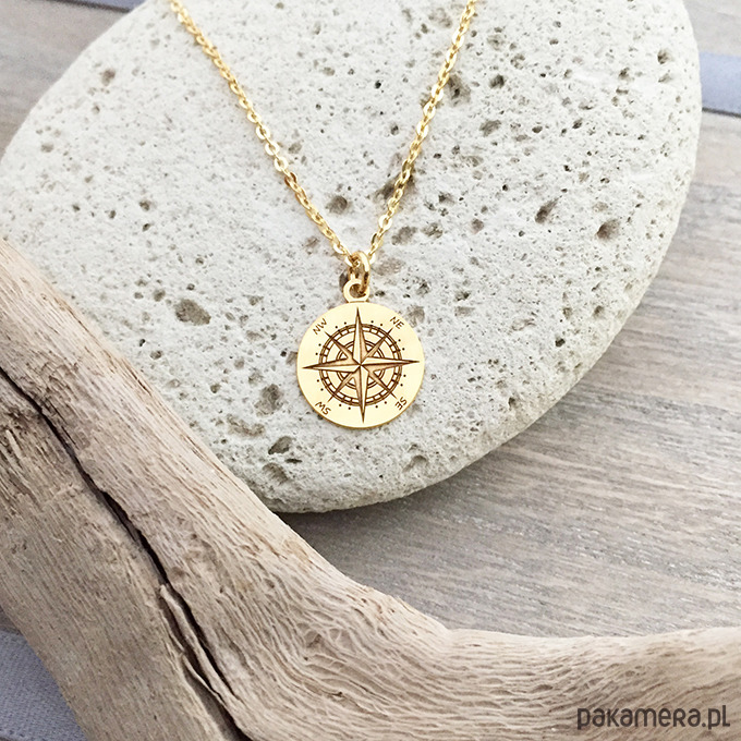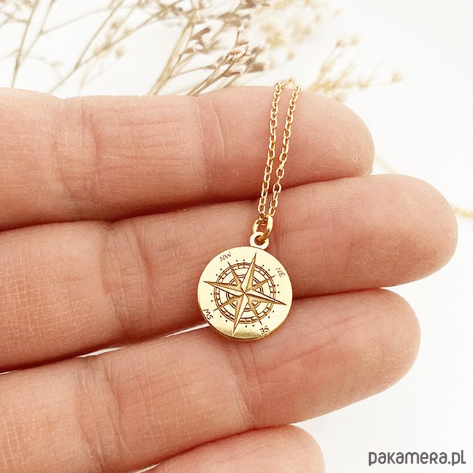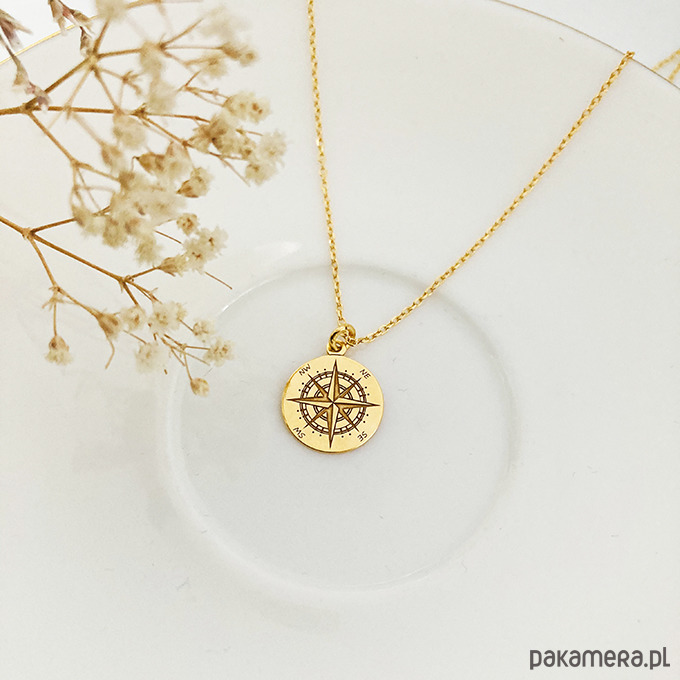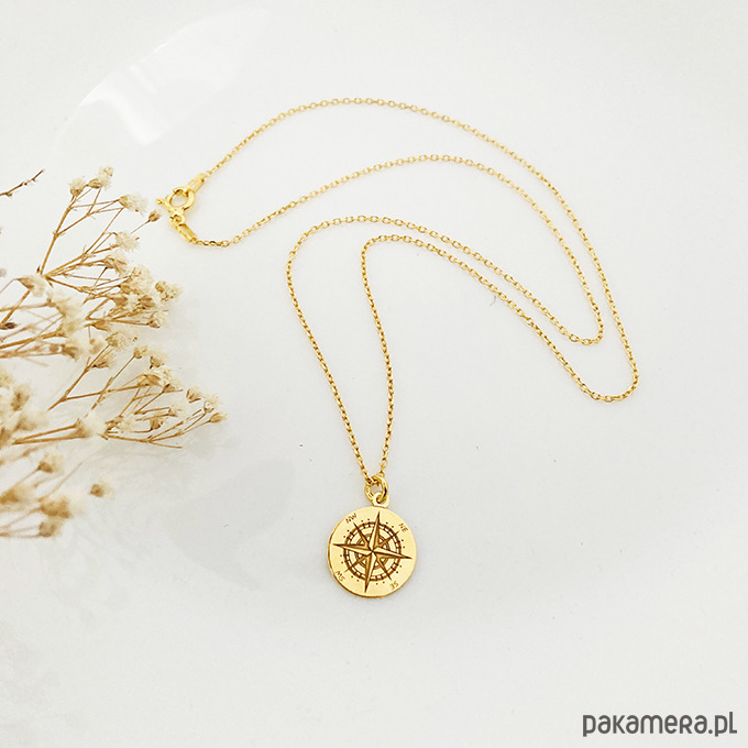 Piękny naszyjnik z zawieszką w kształcie kompasu, symbolizującą drogę, kierunek i wewnętrzną siłę. Wykonany z wysokiej jakości srebra próby 925, pozłacanego 24-karatowym złotem. Precyzyjny grawer jest wyraźny, a jednocześnie subtelny, co nadaje biżuterii elegancki i ponadczasowy charakter. Doskonały wybór dla osób ceniących symbolikę i stylową, delikatną biżuterię.