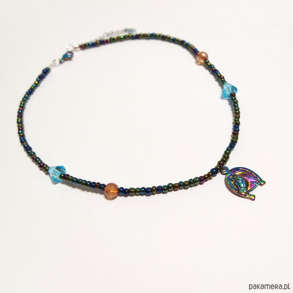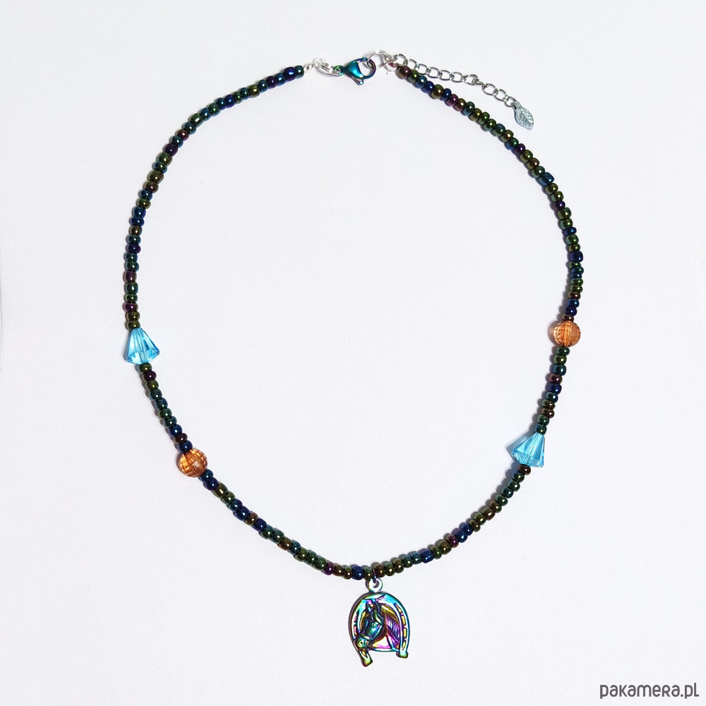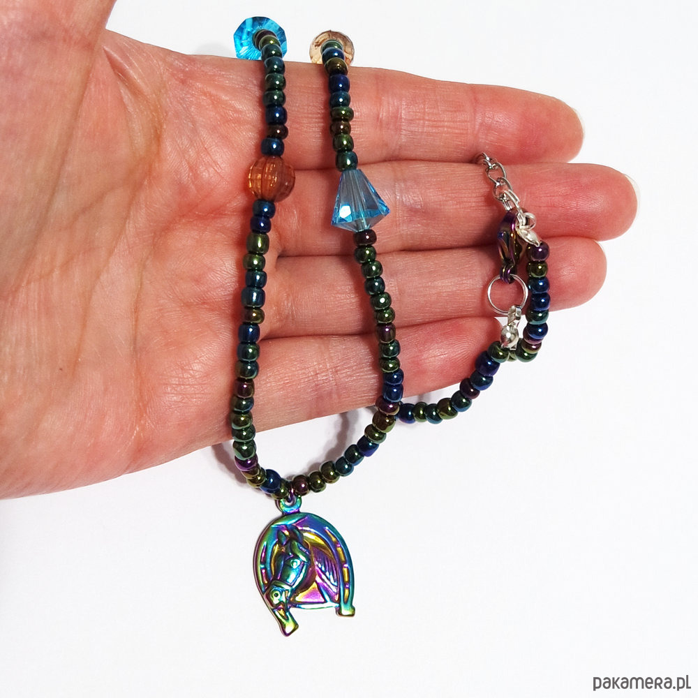 Oryginalny naszyjnik z zawieszką w kształcie konia z podkową.