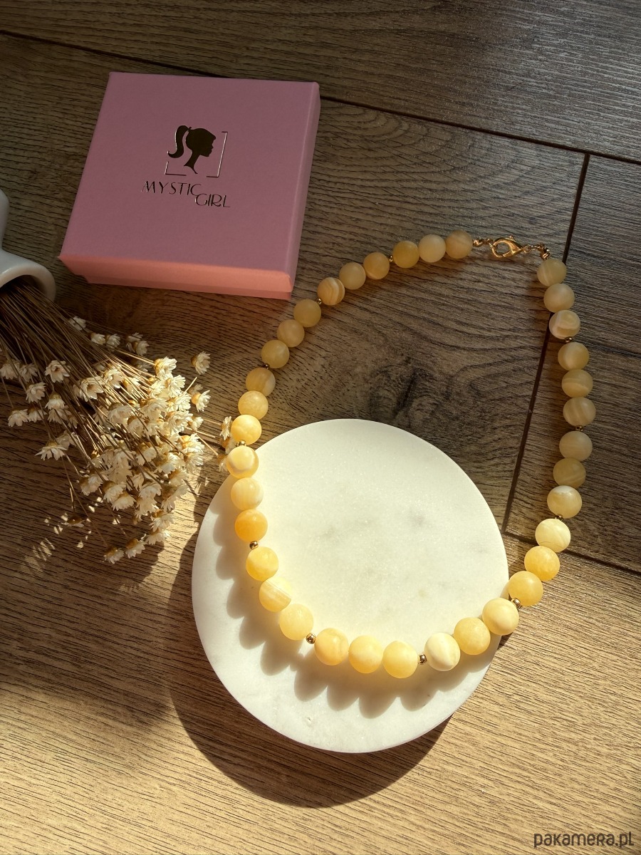 Ręcznie robiony naszyjnik korale z żółtego kalcytu.