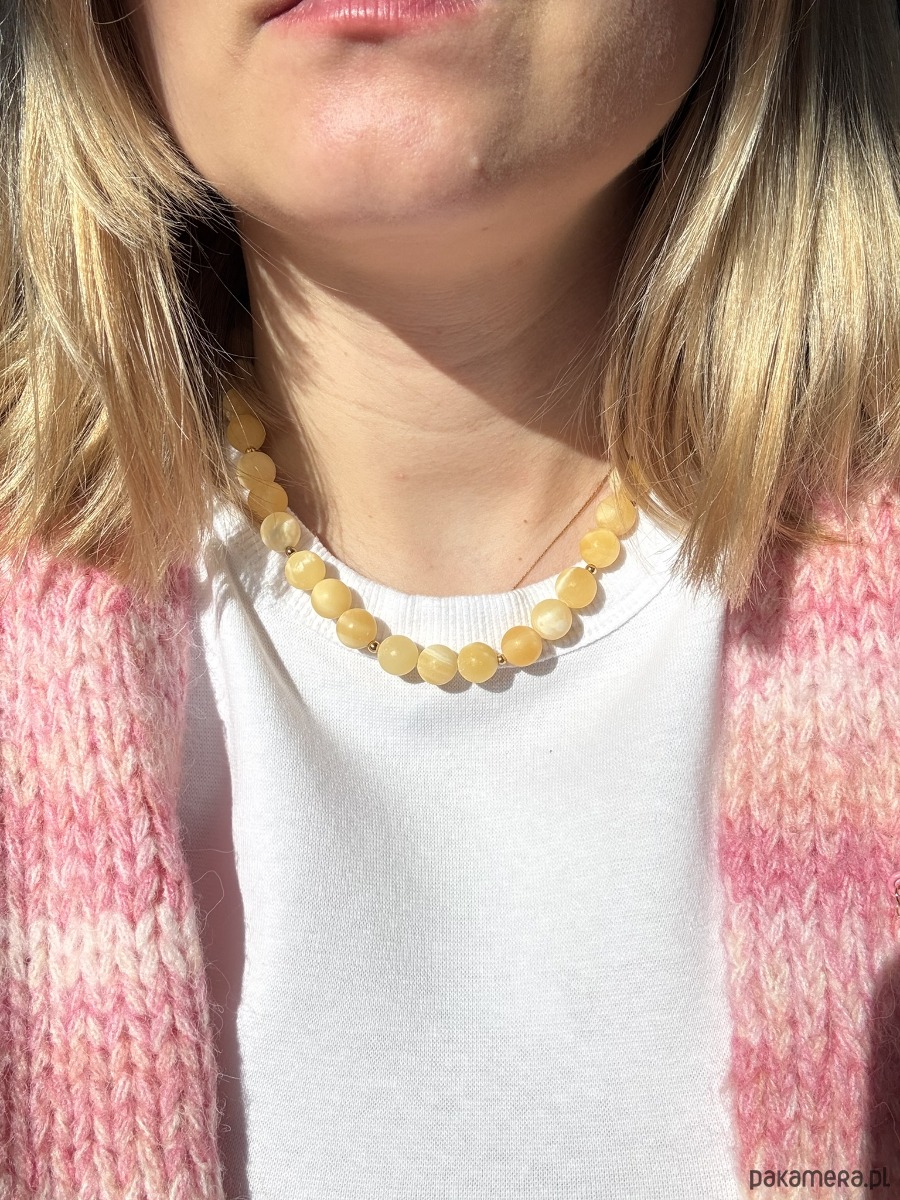 Naszyjnik korale z żółtego kalcytu