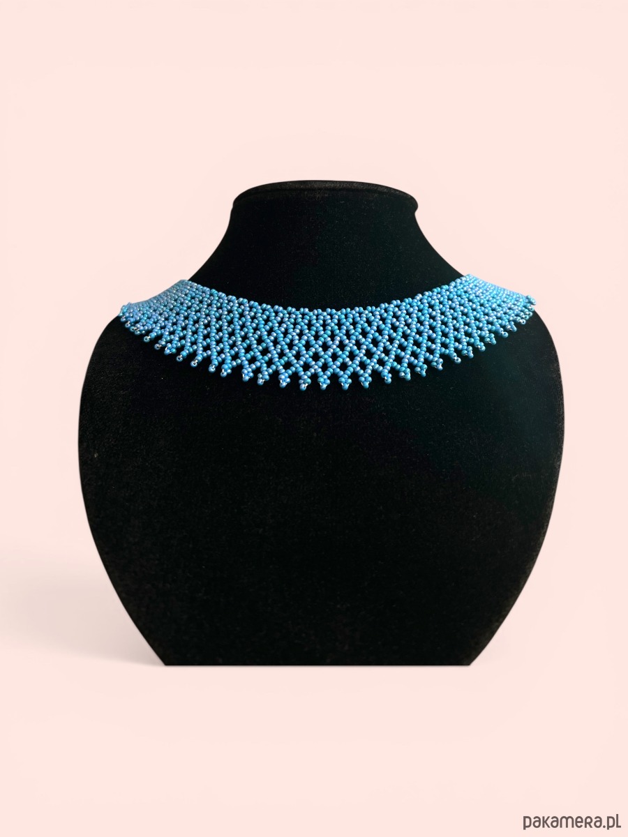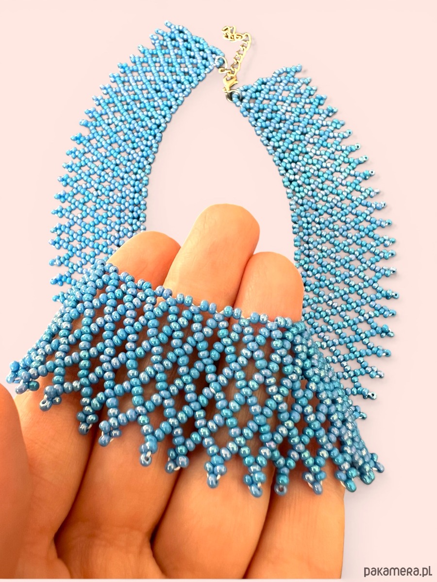 Ten delikatny naszyjnik w formie koralikowego kołnierzyka / kolii został wykonany ręcznie z drobnego czeskiego koralika, tworząc lekką i elegancką formę.