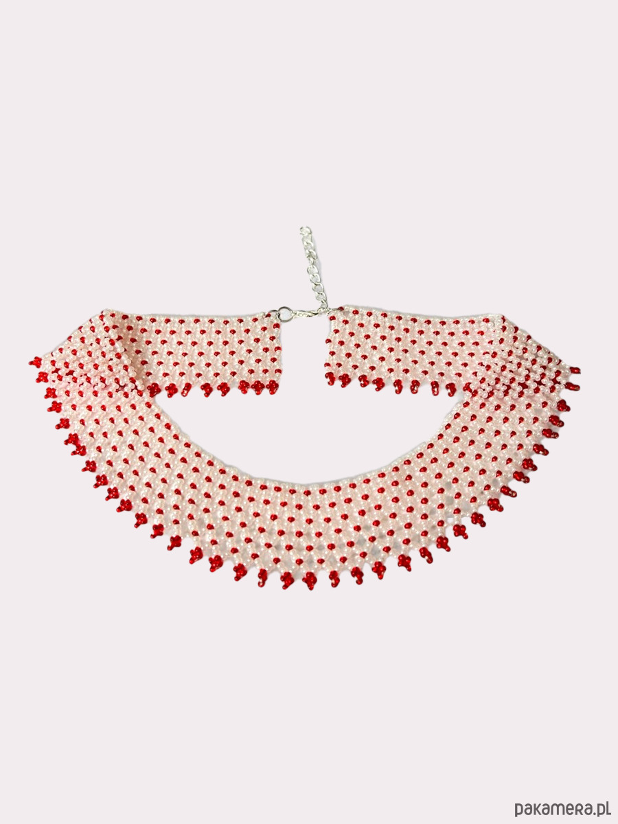 Naszyjnik koralikowy Lemkowska Krywulka biało-czerwona 3 cm